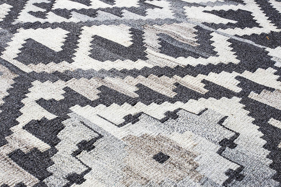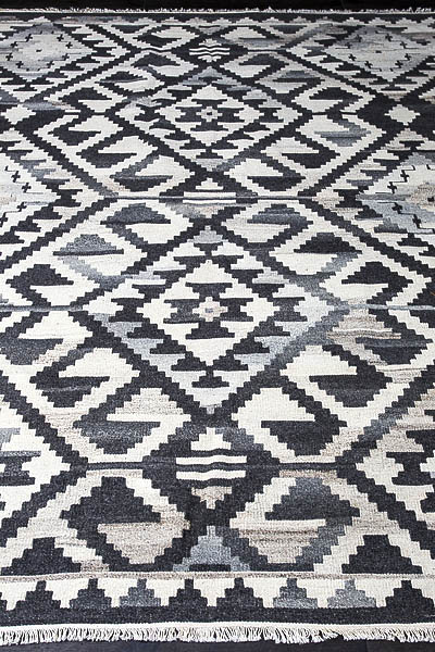 Узор ковров из коллекции Килим создаётся взаимодействием нитей утока и нитей основы, благодаря чему получается геометрический узор.