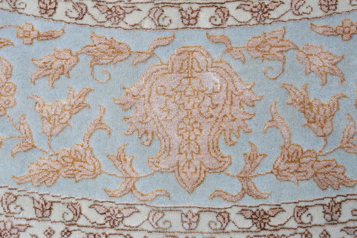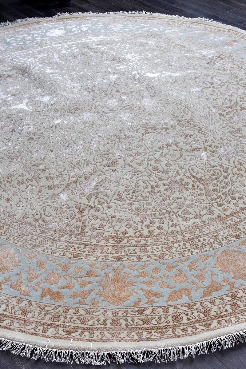 Каждый ковер в этой коллекции соткан вручную из шерсти и арт шёлка опытными индийскими мастерами.