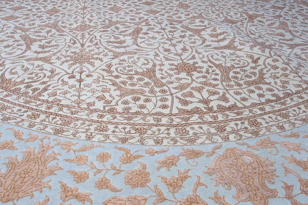 Более пяти веков назад в городе Агра зародилась знаменитая индийская школа ковроткачества, прославившаяся не меньше, чем расположенный здесь же Тадж-Махал. Мощное персидское влияние, помноженное на местный колорит, привело к появлению оригинальных орнаментов с богатыми растительными узорами — причудливым цветам, ветвям и листьям, разбросанным по всему полю ковра.
