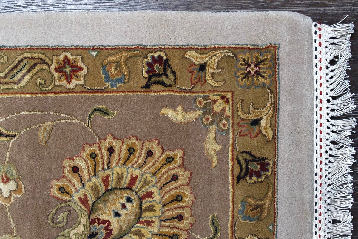 Более пяти веков назад в городе Агра зародилась знаменитая индийская школа ковроткачества, прославившаяся не меньше, чем расположенный здесь же Тадж-Махал. Мощное персидское влияние, помноженное на местный колорит, привело к появлению оригинальных орнаментов с богатыми растительными узорами — причудливым цветам, ветвям и листьям, разбросанным по всему полю ковра.