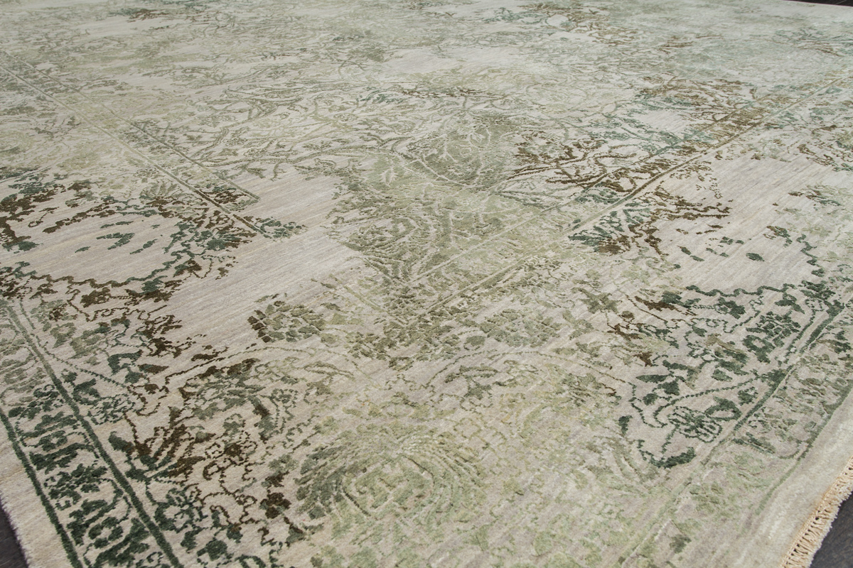 Такой эффект достигается за счет специальной техники плетения, а также обработки, которой подвергают ковры, чтобы они выглядели как антикварные — то есть дорого, элегантно и модно.