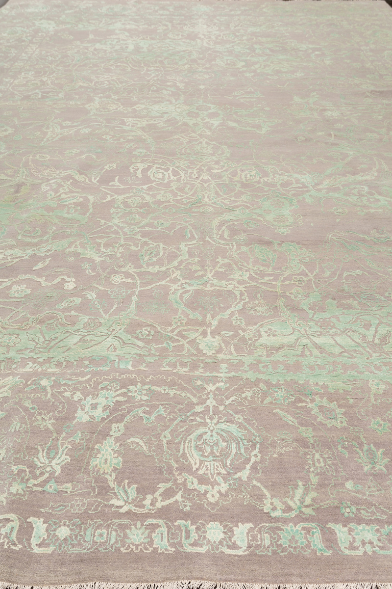 Такой эффект достигается за счет специальной техники плетения, а также обработки, которой подвергают ковры, чтобы они выглядели как антикварные — то есть дорого, элегантно и модно.