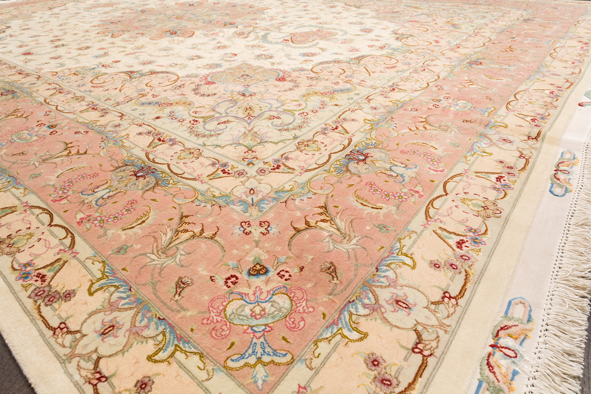 Рассыпанные по всему полю цветы, медальоны и «рыбная чешуя» — основные мотивы в дизайне ковров из коллекции Тебриз, а светлые тона и спокойные пастельные оттенки — основная цветовая палитра.