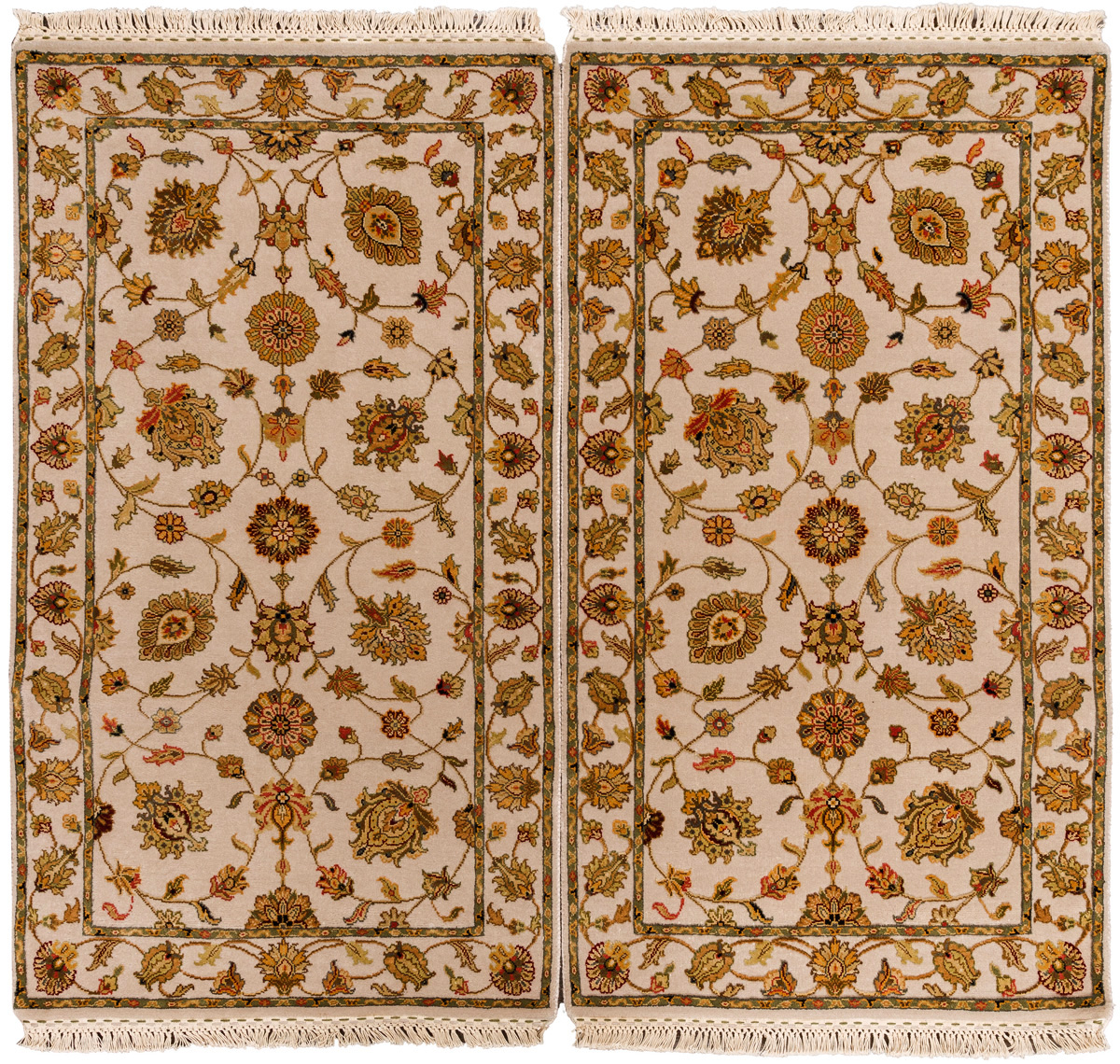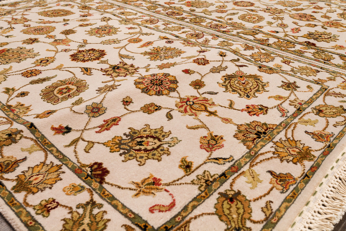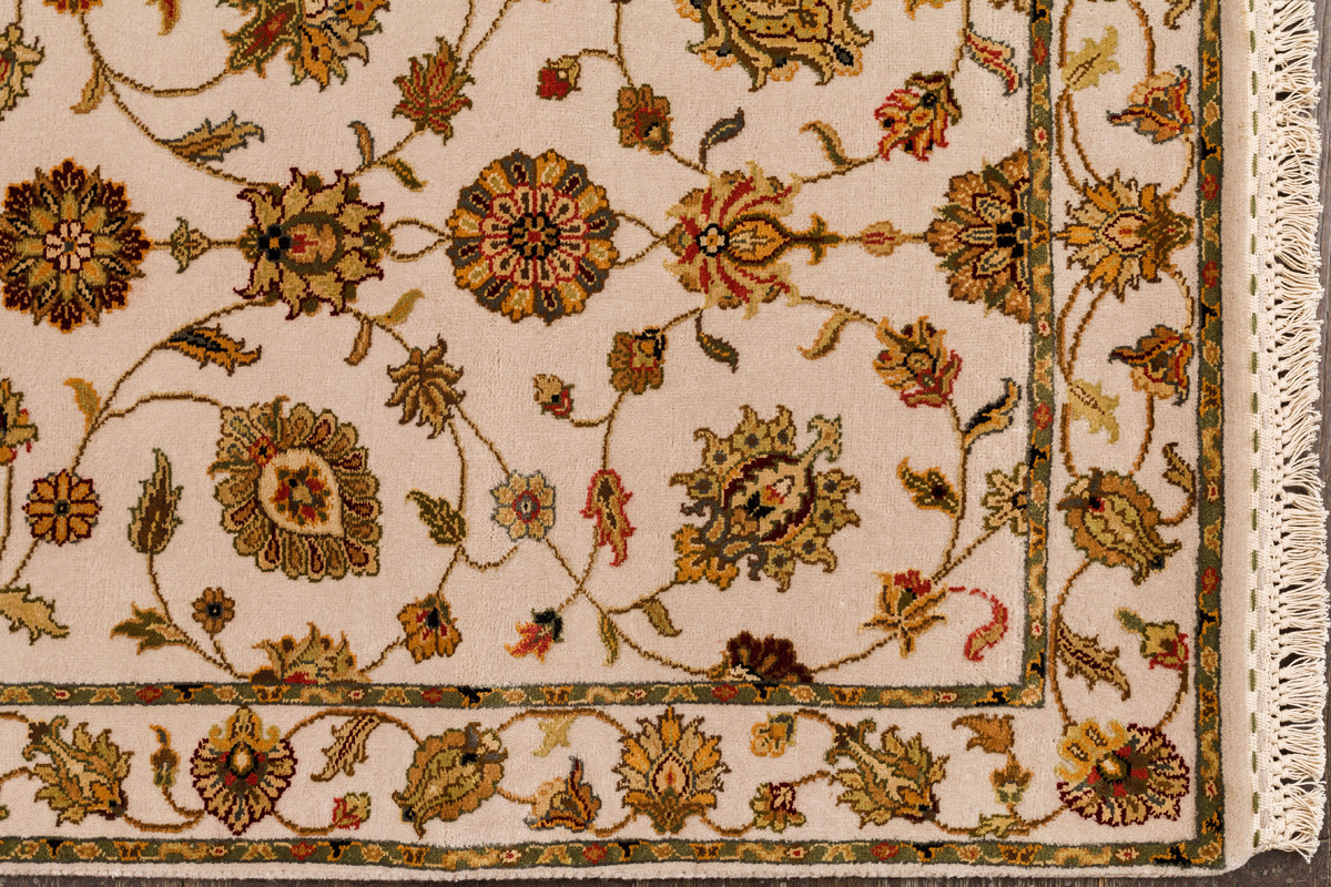 Более пяти веков назад в городе Агра зародилась знаменитая индийская школа ковроткачества, прославившаяся не меньше, чем расположенный здесь же Тадж-Махал. Мощное персидское влияние, помноженное на местный колорит, привело к появлению оригинальных орнаментов с богатыми растительными узорами — причудливым цветам, ветвям и листьям, разбросанным по всему полю ковра.