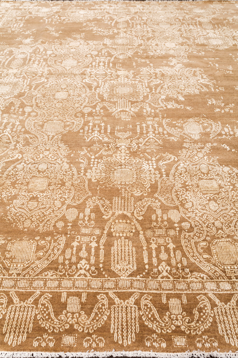 Родина этих ковров Индия. Чтобы создать такое произведение искусства у мастеров уходит от одного года до двух лет. Плотность ковров, в зависимости от размера, составляет от 250 000 до 400 000 узлов на квадратный метр.