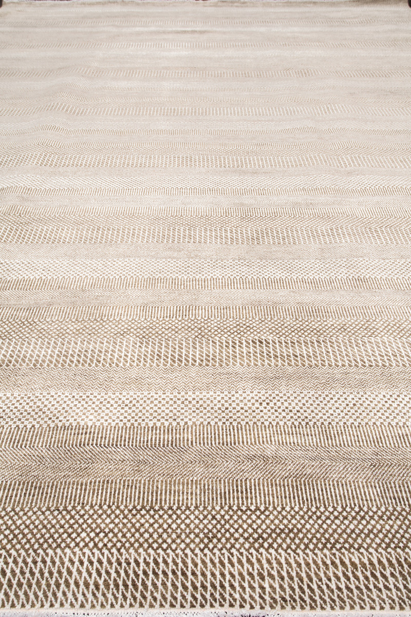 Дизайн ковров напоминает современные полотна художников-абстракционистов и производит столь же яркое и незабываемое впечатление в интерьере. Живописный эффект и необычная фактура зависят от выбора материала: натуральной шерсти, шёлка и от их сочетаний друг с другом. Ковры ткутся вручную в лучших мастерских Индии и Пакистана.