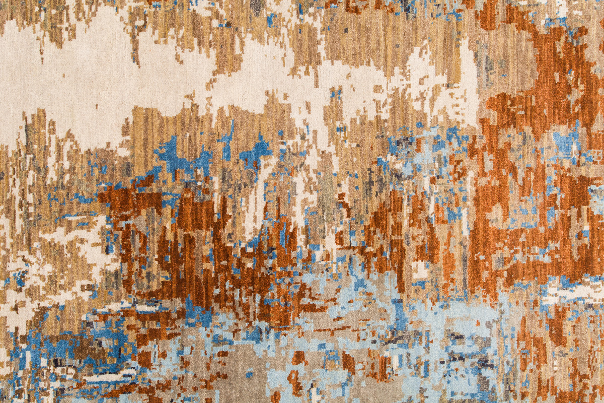 Дизайн ковров напоминает современные полотна художников-абстракционистов и производит столь же яркое и незабываемое впечатление в интерьере. Живописный эффект и необычная фактура зависят от выбора материала: натуральной шерсти, шёлка и от их сочетаний друг с другом. Ковры ткутся вручную в лучших мастерских Индии и Пакистана.
