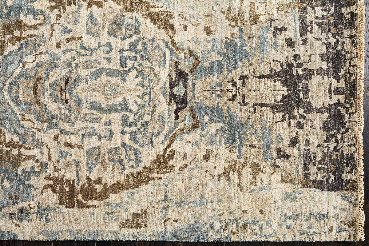 Дизайн ковров напоминает современные полотна художников-абстракционистов и производит столь же яркое и незабываемое впечатление в интерьере. Живописный эффект и необычная фактура зависят от выбора материала: натуральной шерсти, шёлка и от их сочетаний друг с другом. Ковры ткутся вручную в лучших мастерских Индии и Пакистана.