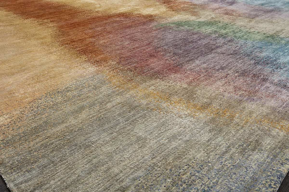 Дизайн ковров напоминает современные полотна художников-абстракционистов и производит столь же яркое и незабываемое впечатление в интерьере. Живописный эффект и необычная фактура зависят от выбора материала: натуральной шерсти, шёлка и от их сочетаний друг с другом. Ковры ткутся вручную в лучших мастерских Индии и Пакистана.