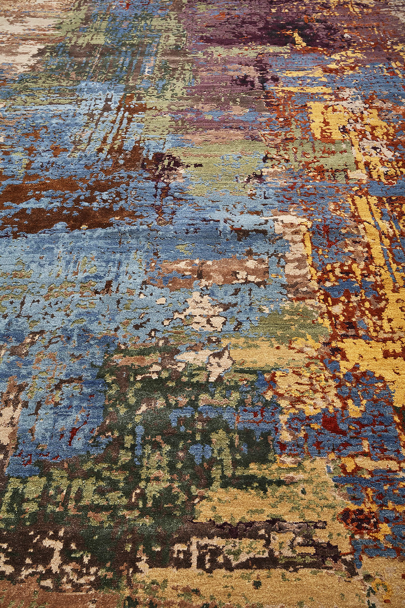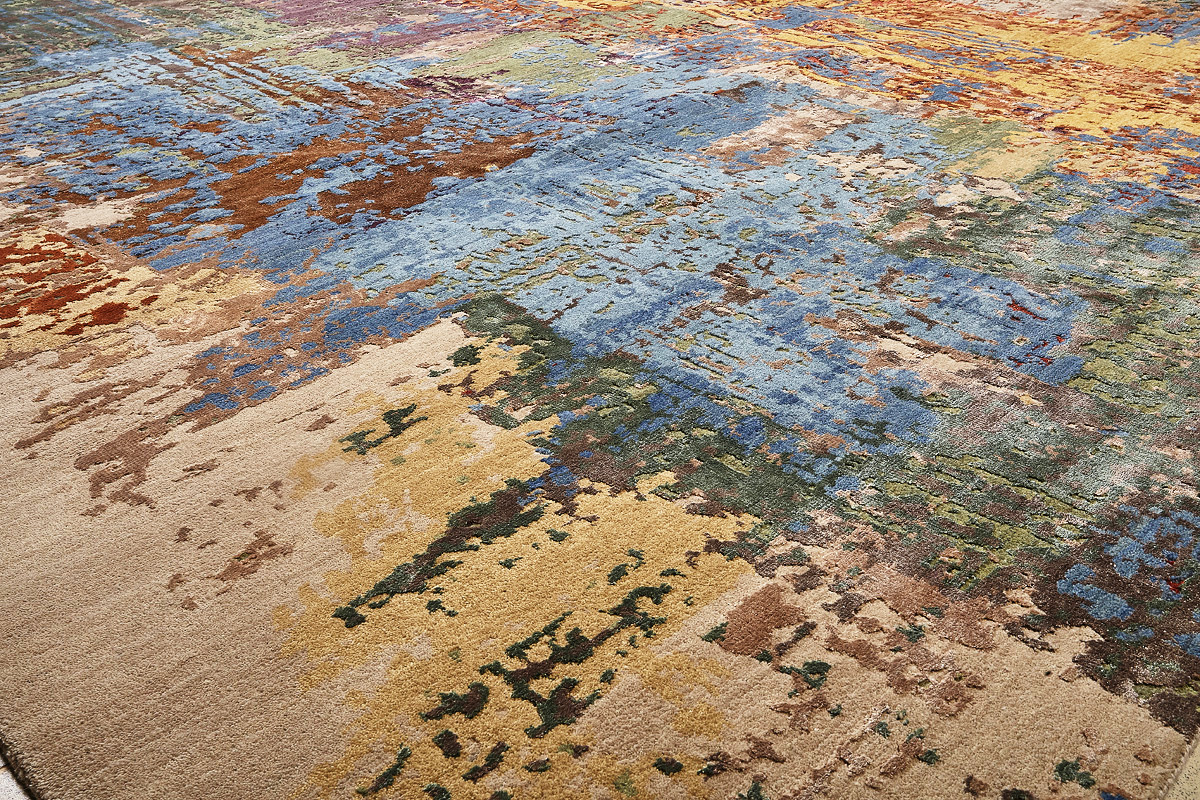 Дизайн ковров напоминает современные полотна художников-абстракционистов и производит столь же яркое и незабываемое впечатление в интерьере. Живописный эффект и необычная фактура зависят от выбора материала: натуральной шерсти, шёлка и от их сочетаний друг с другом. Ковры ткутся вручную в лучших мастерских Индии и Пакистана.