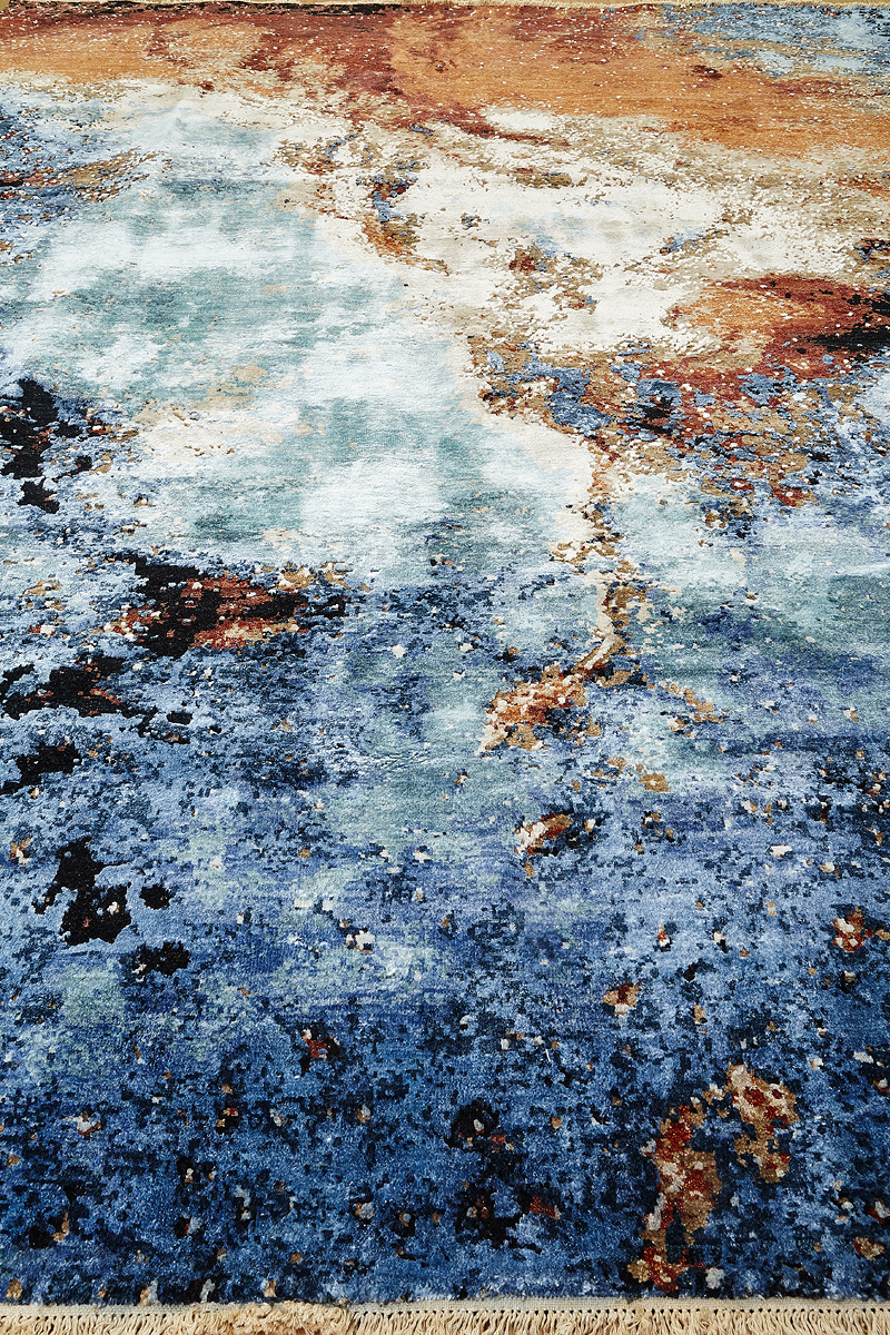 Дизайн ковров напоминает современные полотна художников-абстракционистов и производит столь же яркое и незабываемое впечатление в интерьере. Живописный эффект и необычная фактура зависят от выбора материала: натуральной шерсти, шёлка и от их сочетаний друг с другом. Ковры ткутся вручную в лучших мастерских Индии и Пакистана.