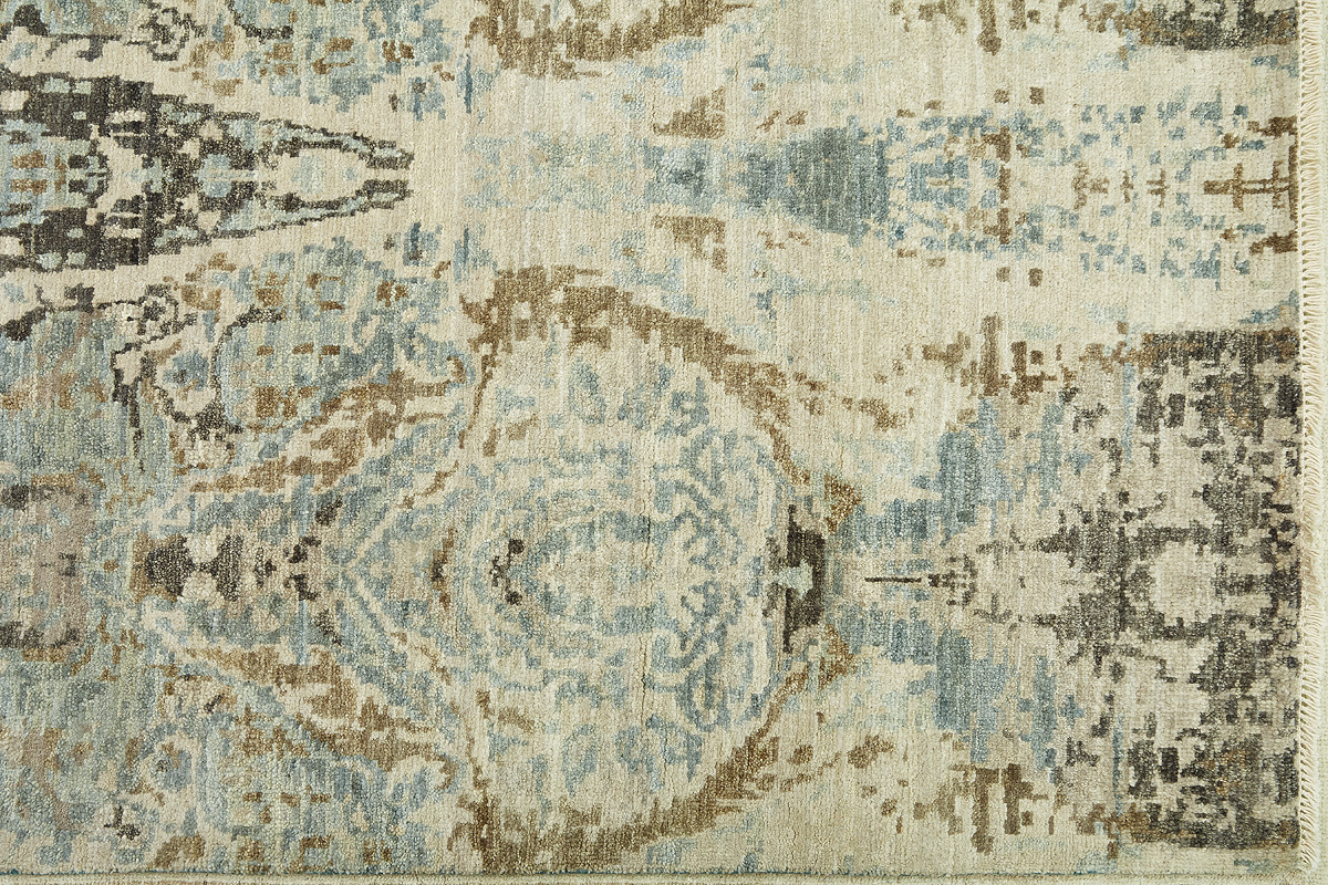Дизайн ковров напоминает современные полотна художников-абстракционистов и производит столь же яркое и незабываемое впечатление в интерьере. Живописный эффект и необычная фактура зависят от выбора материала: натуральной шерсти, шёлка и от их сочетаний друг с другом. Ковры ткутся вручную в лучших мастерских Индии и Пакистана.