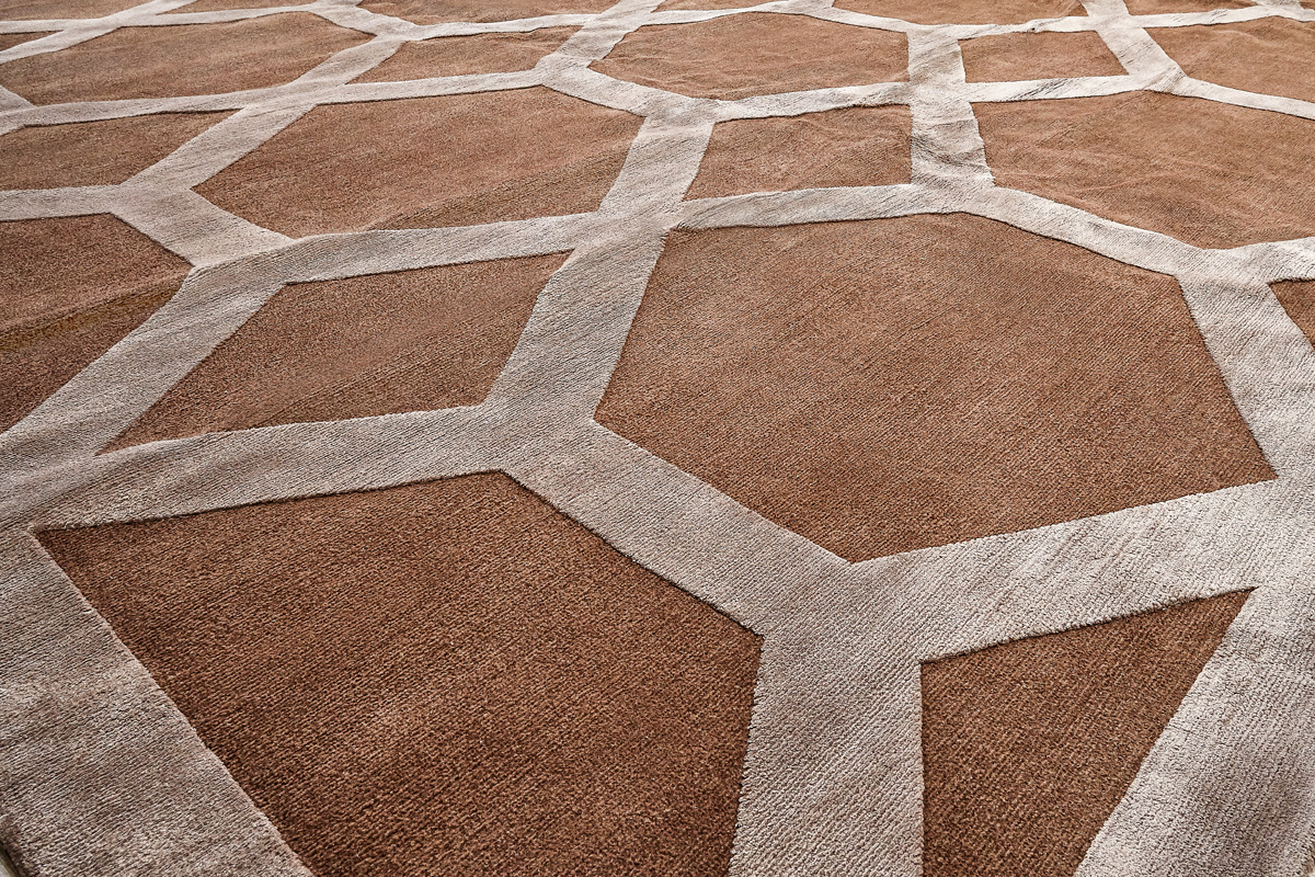 Крупные рисунки в виде линий и фигур на фактурной поверхности ковра превращаются в выразительные композиции. Они акцентируют на себе внимание и добавляют динамики в современный интерьер. Комбинации разных фигур и повторяющийся орнамент задают ритмическую основу пространству, привносят в него оригинальные оптические иллюзии.