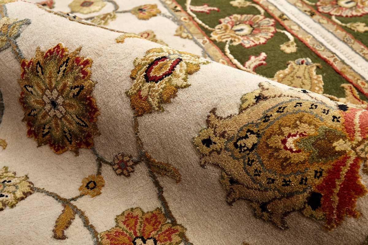 Более пяти веков назад в городе Агра зародилась знаменитая индийская школа ковроткачества, прославившаяся не меньше, чем расположенный здесь же Тадж-Махал. Мощное персидское влияние, помноженное на местный колорит, привело к появлению оригинальных орнаментов с богатыми растительными узорами — причудливым цветам, ветвям и листьям, разбросанным по всему полю ковра.