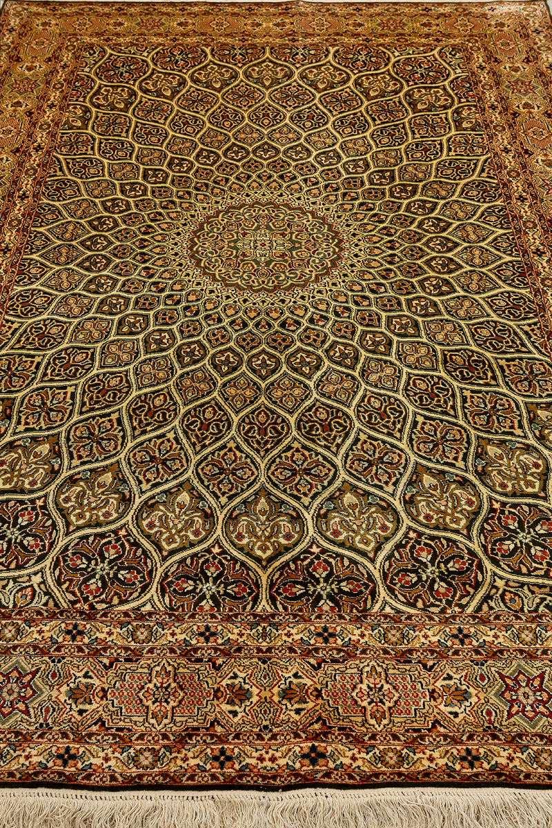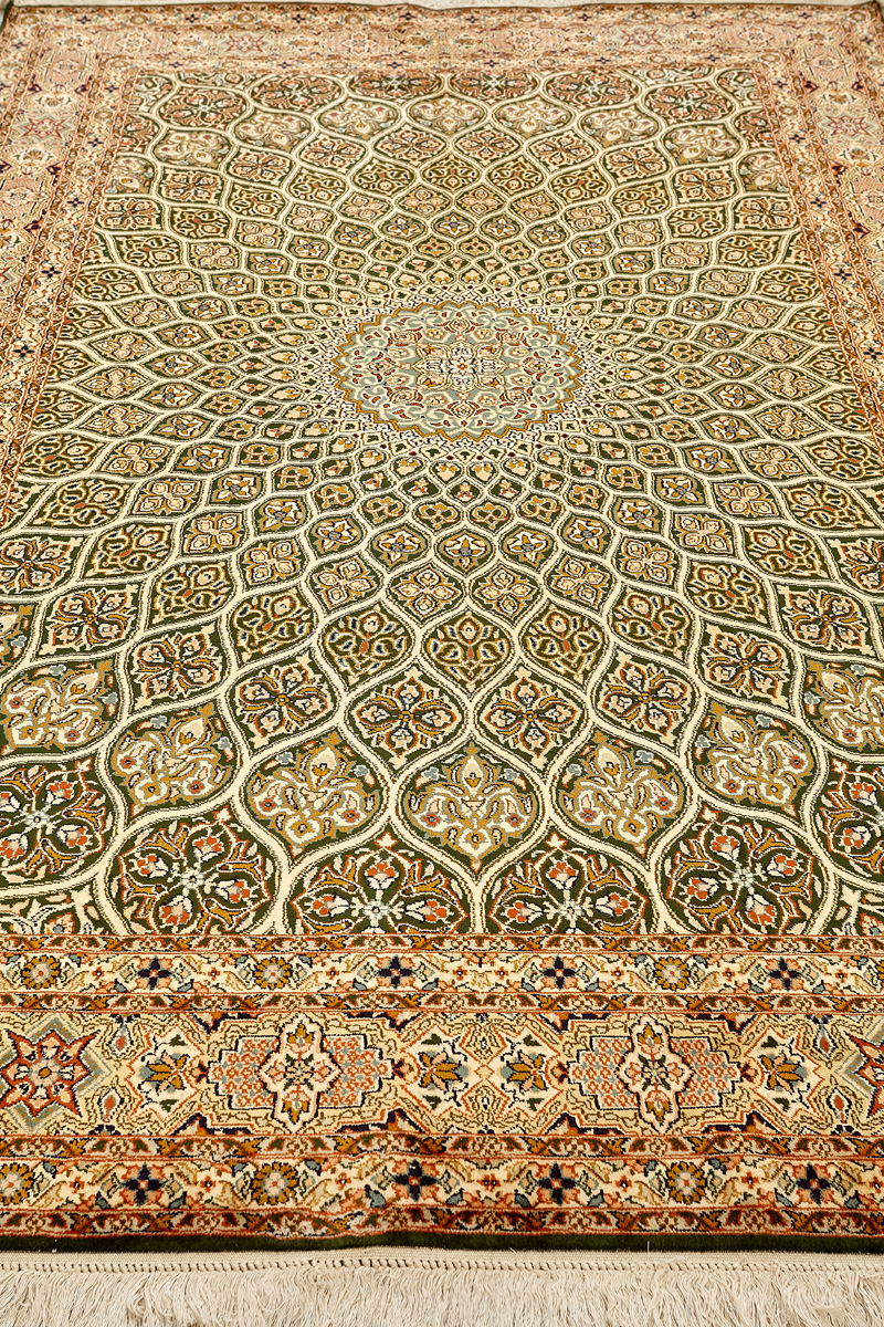 Ковры из коллекции Кашмир ткутся по традиционной технологии из нежнейшего кашмирского шелка. Лучшие произведения индийских мастеров отличает высокая узелковая плотность, прочность и яркость цветов.