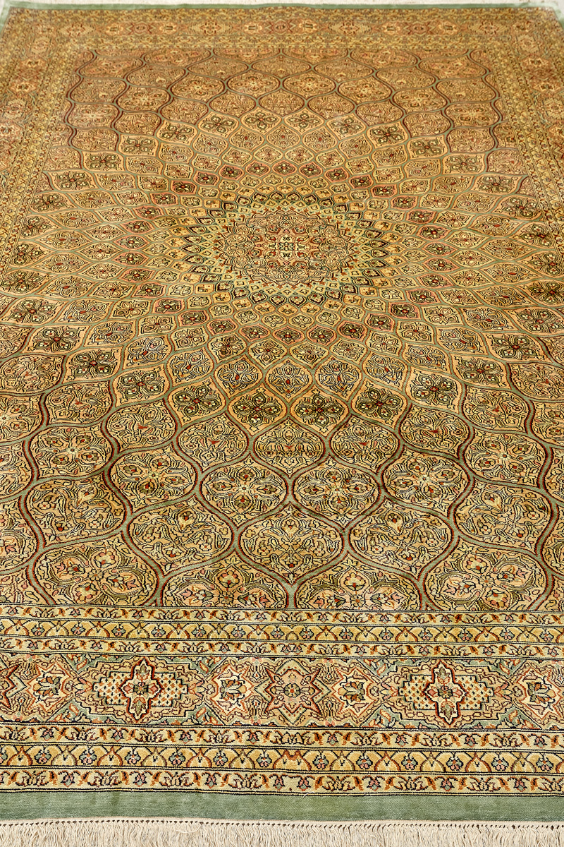 Ковры из коллекции Кашмир ткутся по традиционной технологии из нежнейшего кашмирского шелка. Лучшие произведения индийских мастеров отличает высокая узелковая плотность, прочность и яркость цветов.
