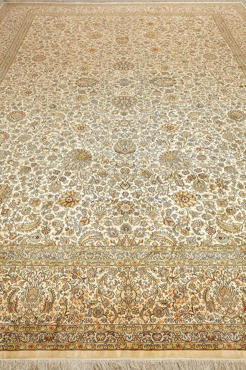 Ковры из коллекции Кашмир ткутся по традиционной технологии из нежнейшего кашмирского шелка. Лучшие произведения индийских мастеров отличает высокая узелковая плотность, прочность и яркость цветов.