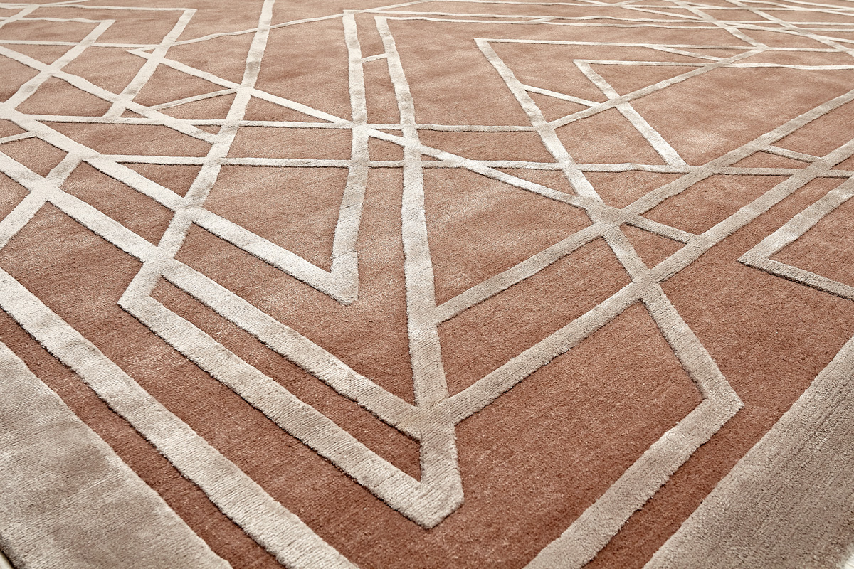 Крупные рисунки в виде линий и фигур на фактурной поверхности ковра превращаются в выразительные композиции. Они акцентируют на себе внимание и добавляют динамики в современный интерьер. Комбинации разных фигур и повторяющийся орнамент задают ритмическую основу пространству, привносят в него оригинальные оптические иллюзии.