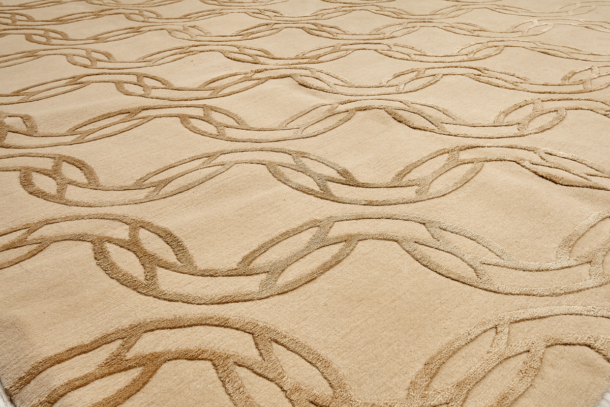 Крупные рисунки в виде линий и фигур на фактурной поверхности ковра превращаются в выразительные композиции. Они акцентируют на себе внимание и добавляют динамики в современный интерьер. Комбинации разных фигур и повторяющийся орнамент задают ритмическую основу пространству, привносят в него оригинальные оптические иллюзии.