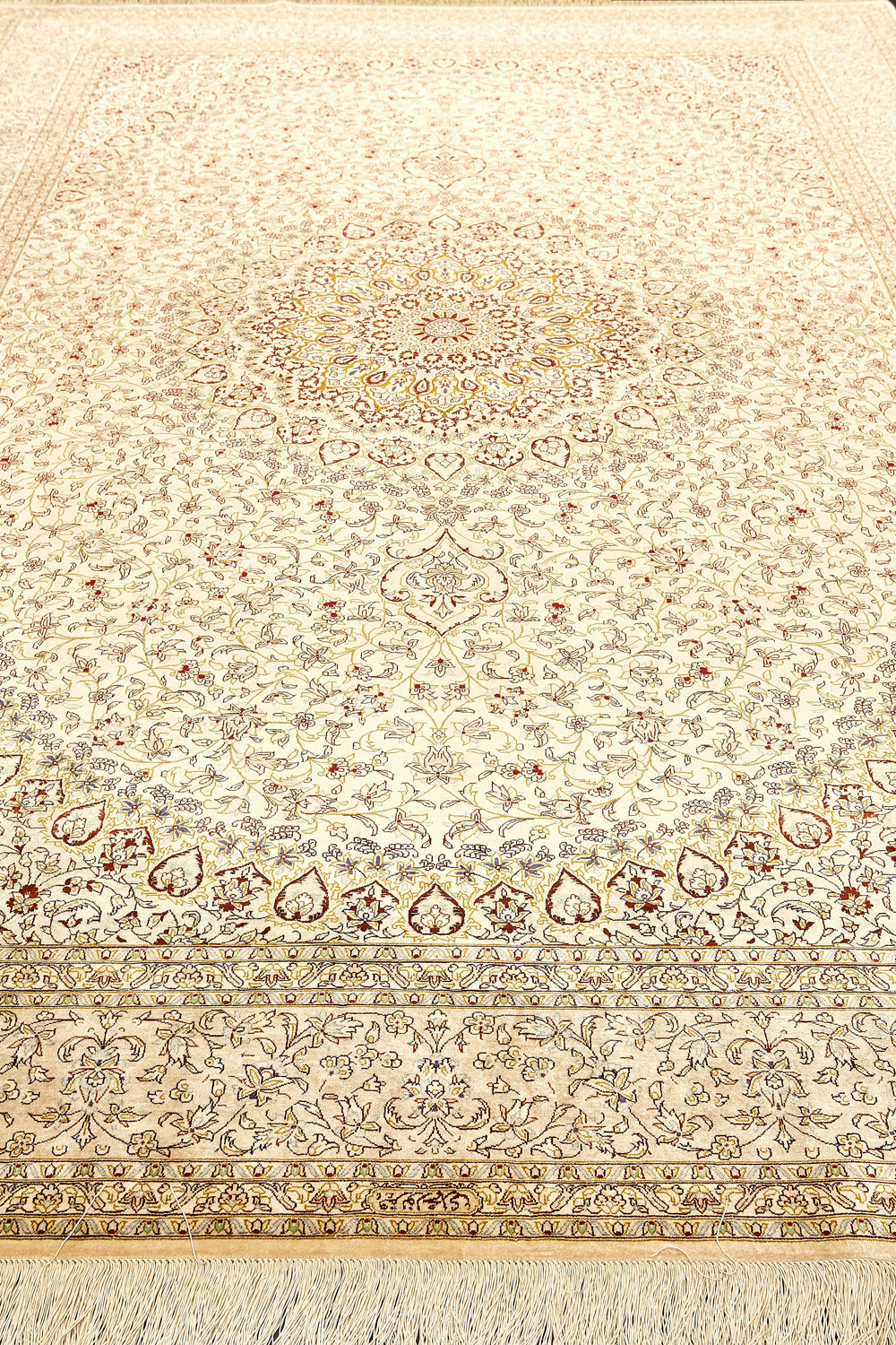Шёлковая нить гибкая и прочная, поэтому ковры из этого материала считаются самыми износостойкими, а по количеству цветов в одном узоре ковры из коллекции Кум, пожалуй, остаются непревзойдёнными.