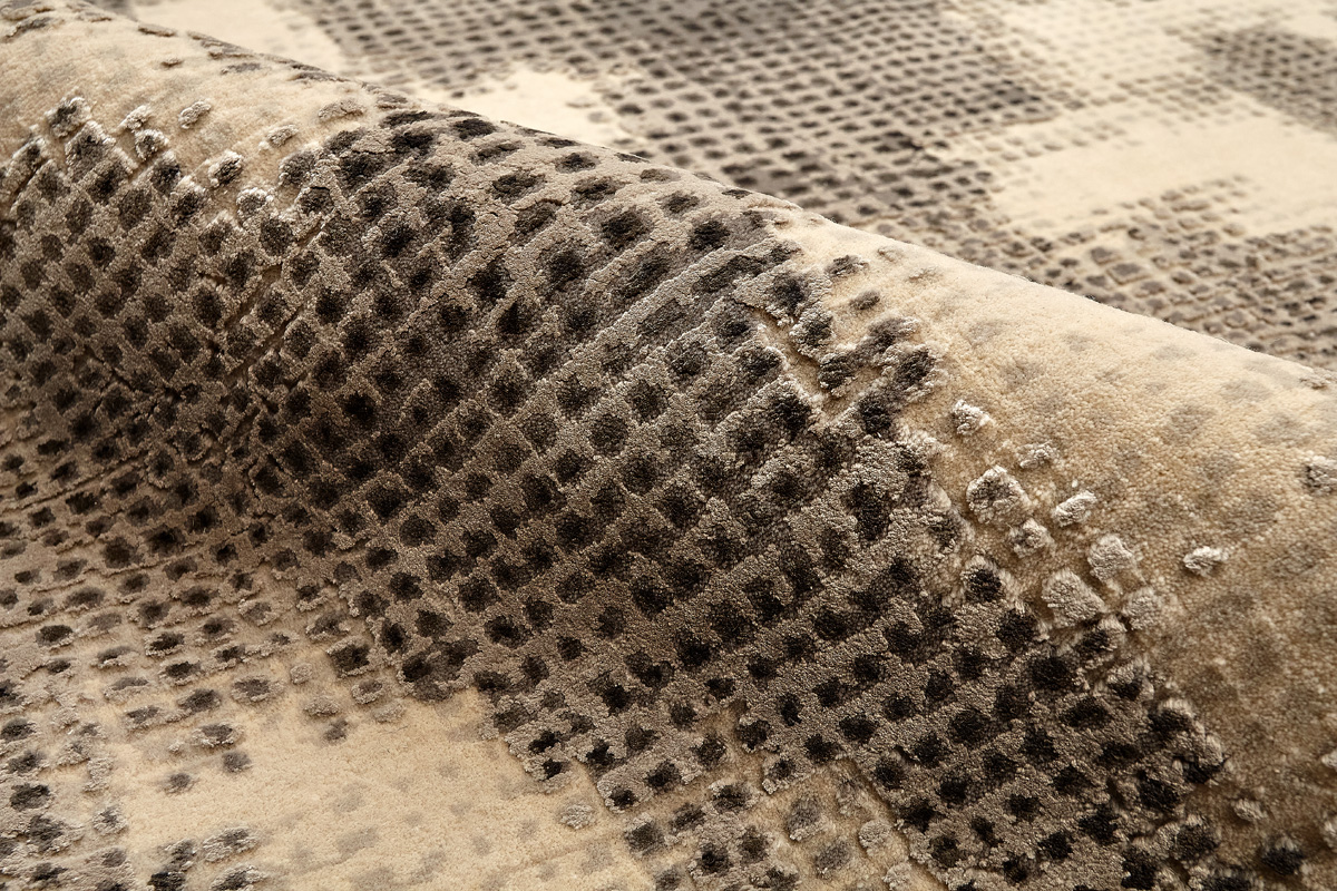 Дизайн ковров напоминает современные полотна художников-абстракционистов и производит столь же яркое и незабываемое впечатление в интерьере. Живописный эффект и необычная фактура зависят от выбора материала: натуральной шерсти, шёлка и от их сочетаний друг с другом. Ковры ткутся вручную в лучших мастерских Индии и Пакистана.