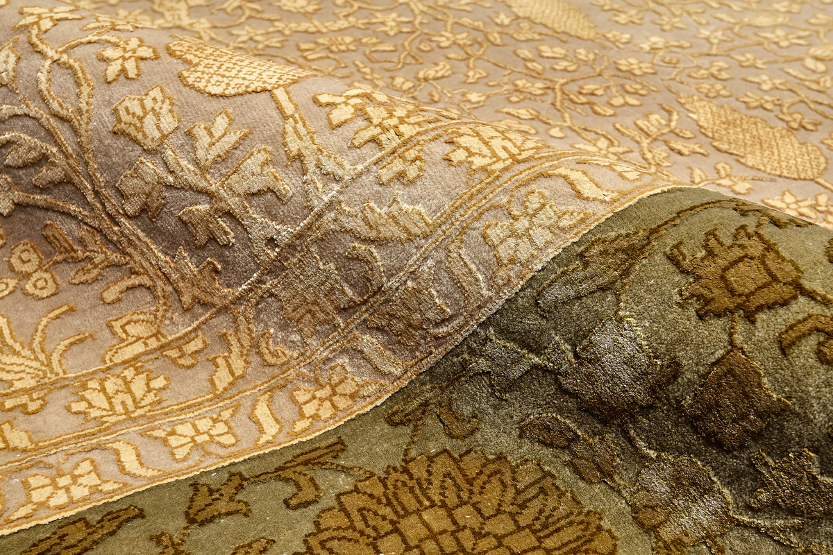 Каждый ковер в этой коллекции соткан вручную из шерсти и арт шёлка опытными индийскими мастерами.