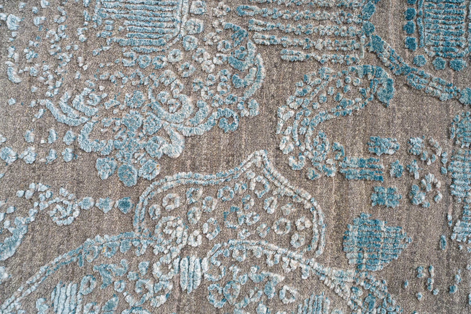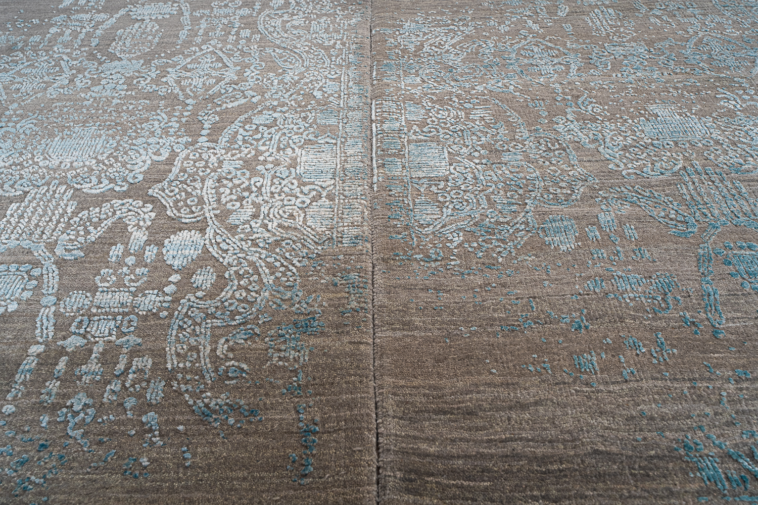 Такой эффект достигается за счет специальной техники плетения, а также обработки, которой подвергают ковры, чтобы они выглядели как антикварные — то есть дорого, элегантно и модно.