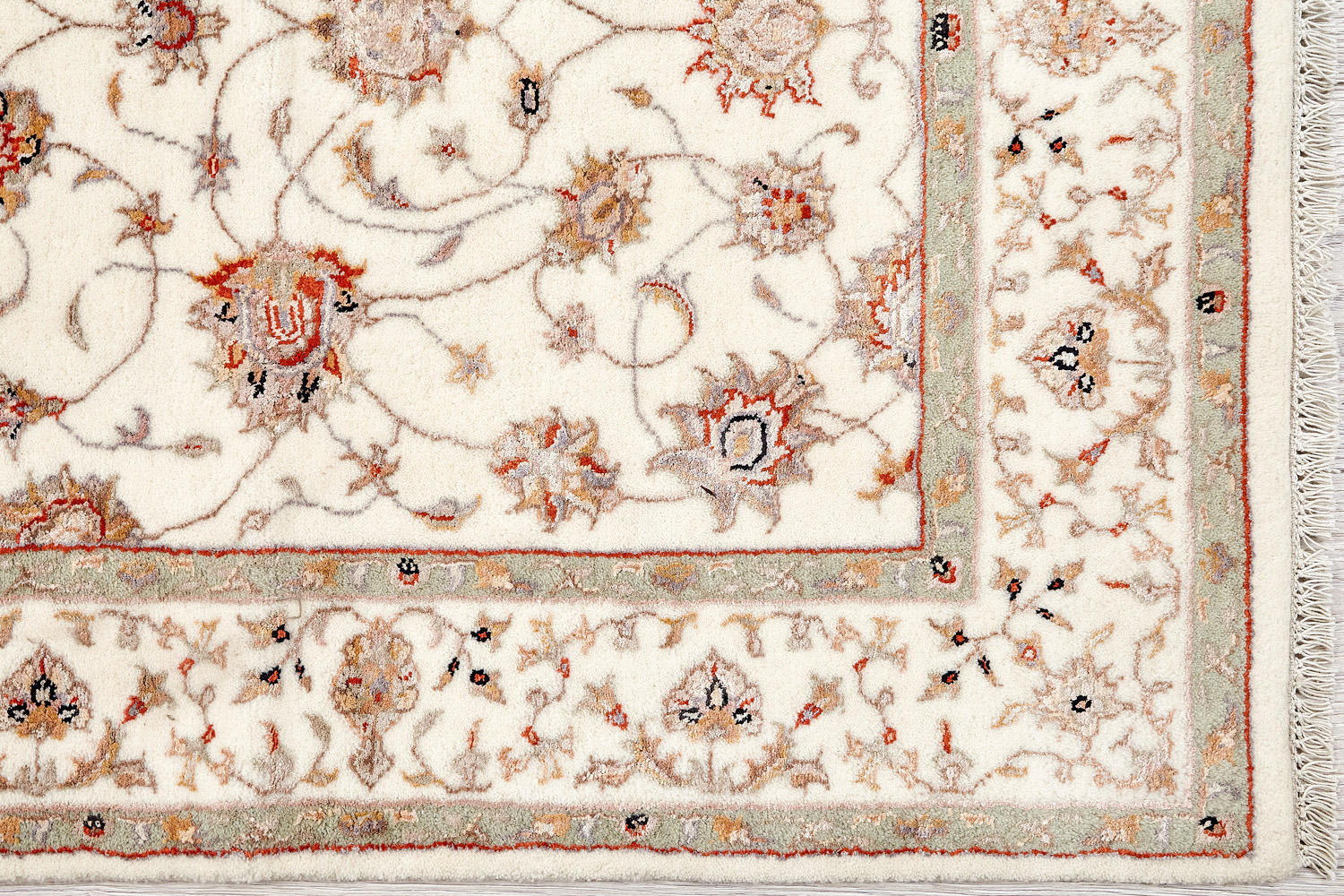 Более пяти веков назад в городе Агра зародилась знаменитая индийская школа ковроткачества, прославившаяся не меньше, чем расположенный здесь же Тадж-Махал. Мощное персидское влияние, помноженное на местный колорит, привело к появлению оригинальных орнаментов с богатыми растительными узорами — причудливым цветам, ветвям и листьям, разбросанным по всему полю ковра.