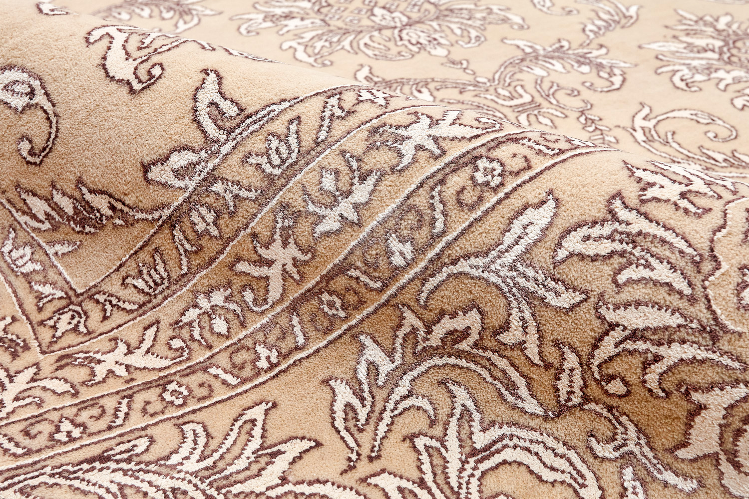 Каждый ковер в этой коллекции соткан вручную из шерсти и арт шёлка опытными индийскими мастерами.