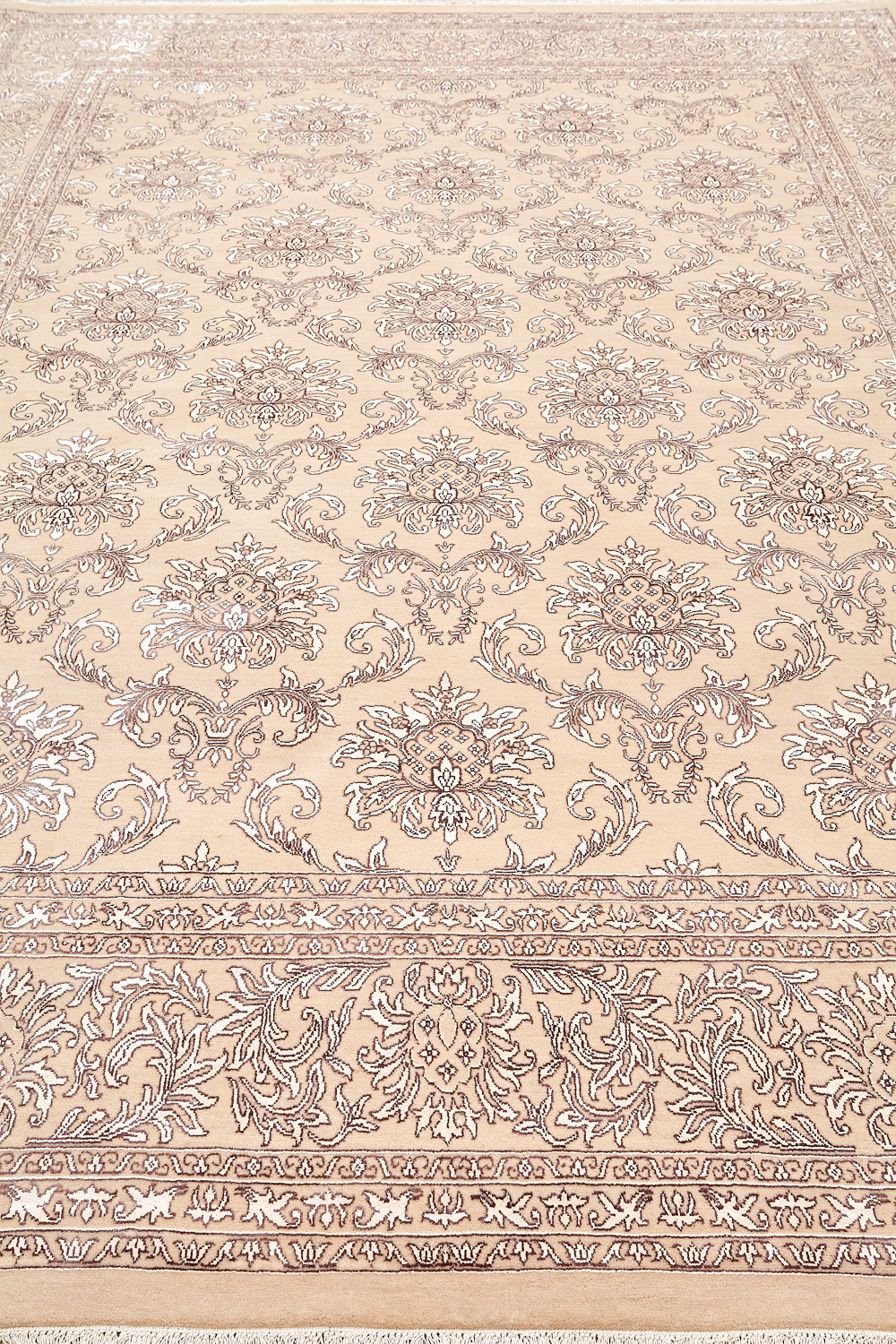 Более пяти веков назад в городе Агра зародилась знаменитая индийская школа ковроткачества, прославившаяся не меньше, чем расположенный здесь же Тадж-Махал. Мощное персидское влияние, помноженное на местный колорит, привело к появлению оригинальных орнаментов с богатыми растительными узорами — причудливым цветам, ветвям и листьям, разбросанным по всему полю ковра.