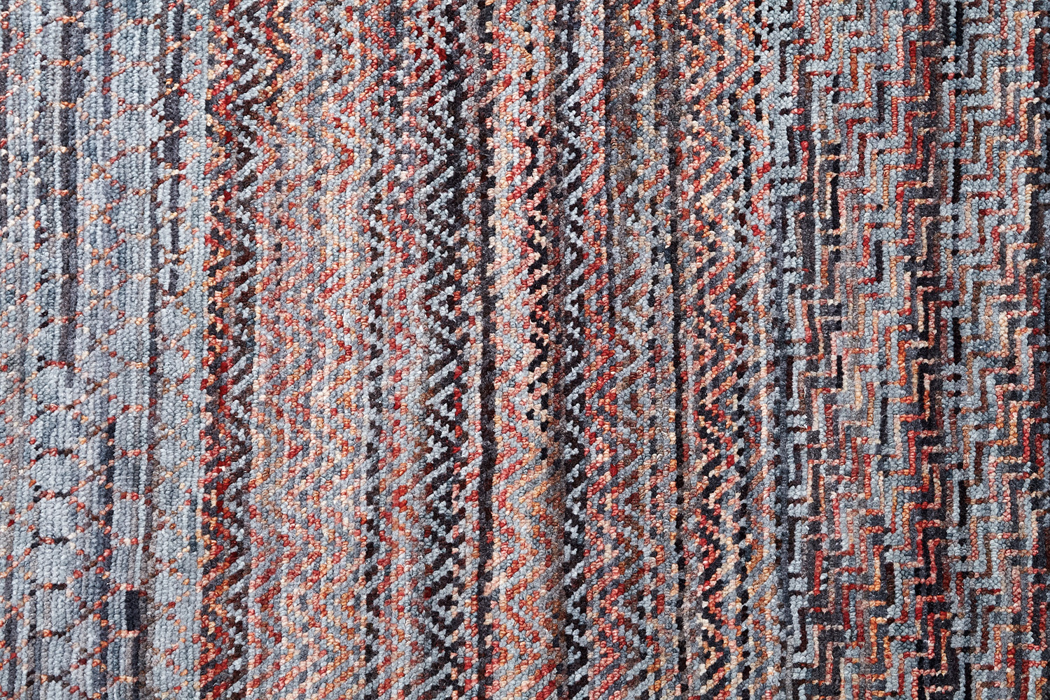 Дизайн ковров напоминает современные полотна художников-абстракционистов и производит столь же яркое и незабываемое впечатление в интерьере. Живописный эффект и необычная фактура зависят от выбора материала: натуральной шерсти, шёлка и от их сочетаний друг с другом. Ковры ткутся вручную в лучших мастерских Индии и Пакистана.