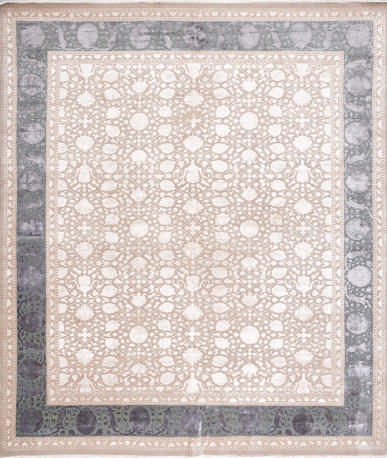 Каждый ковер в этой коллекции соткан вручную из шерсти и арт шёлка опытными индийскими мастерами.