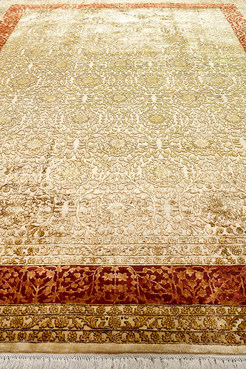 Каждый ковер в этой коллекции соткан вручную из шерсти и арт шёлка опытными индийскими мастерами.