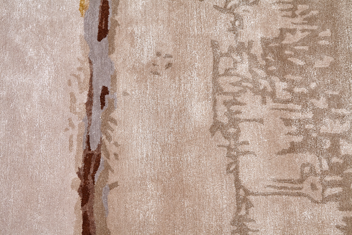 Дизайн ковров напоминает современные полотна художников-абстракционистов и производит столь же яркое и незабываемое впечатление в интерьере. Живописный эффект и необычная фактура зависят от выбора материала: натуральной шерсти, шёлка и от их сочетаний друг с другом. Ковры ткутся вручную в лучших мастерских Индии и Пакистана.