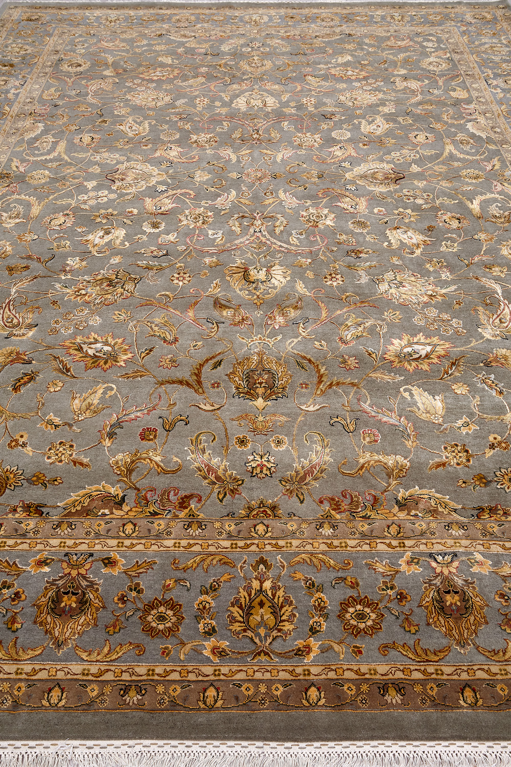Более пяти веков назад в городе Агра зародилась знаменитая индийская школа ковроткачества, прославившаяся не меньше, чем расположенный здесь же Тадж-Махал. Мощное персидское влияние, помноженное на местный колорит, привело к появлению оригинальных орнаментов с богатыми растительными узорами — причудливым цветам, ветвям и листьям, разбросанным по всему полю ковра.