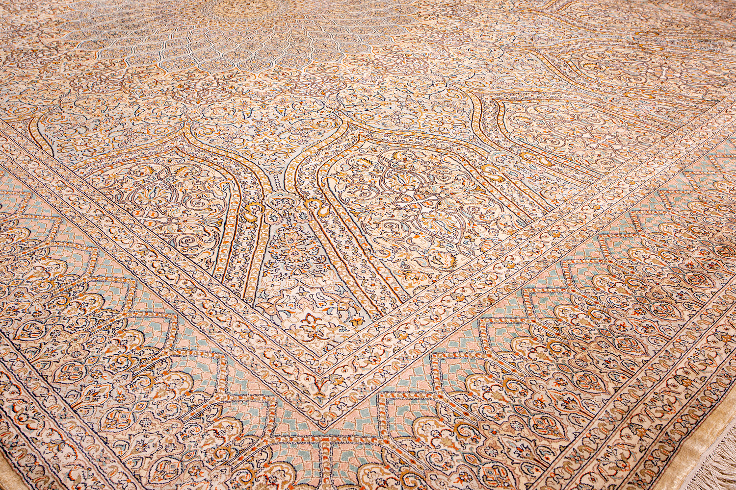Ковры из коллекции Кашмир ткутся по традиционной технологии из нежнейшего кашмирского шелка. Лучшие произведения индийских мастеров отличает высокая узелковая плотность, прочность и яркость цветов.