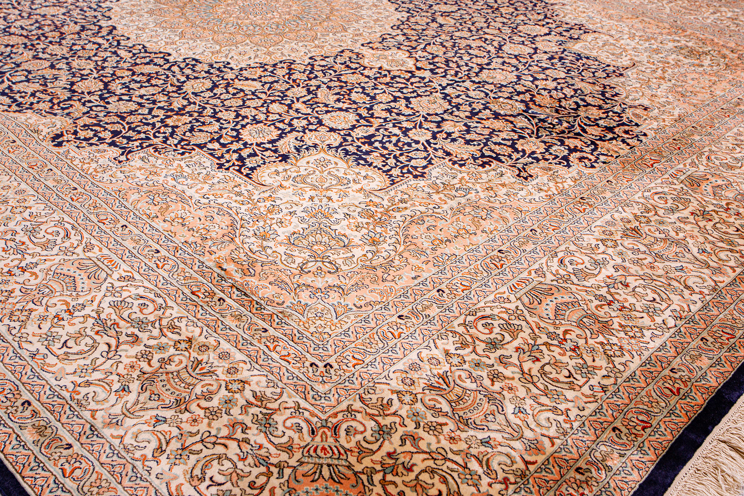 Ковры из коллекции Кашмир ткутся по традиционной технологии из нежнейшего кашмирского шелка. Лучшие произведения индийских мастеров отличает высокая узелковая плотность, прочность и яркость цветов.