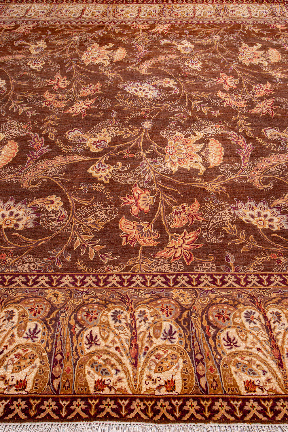 Каждый ковер в этой коллекции соткан вручную из шерсти и арт шёлка опытными индийскими мастерами.