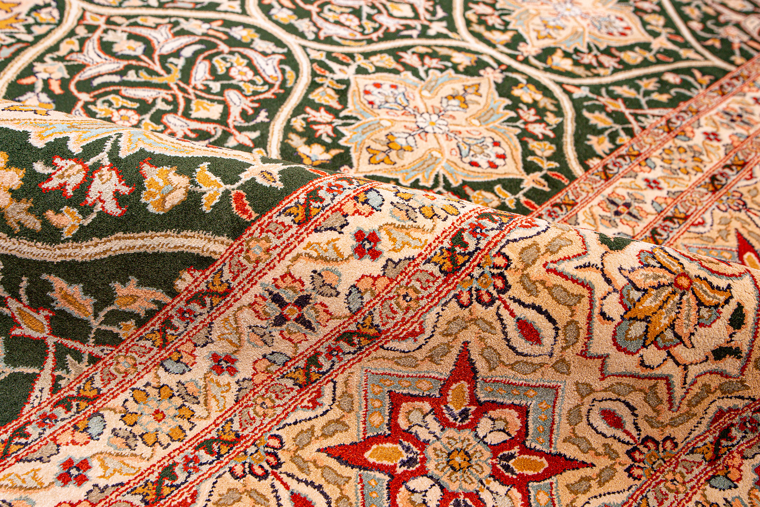 Ковры из коллекции Кашмир ткутся по традиционной технологии из нежнейшего кашмирского шелка. Лучшие произведения индийских мастеров отличает высокая узелковая плотность, прочность и яркость цветов.