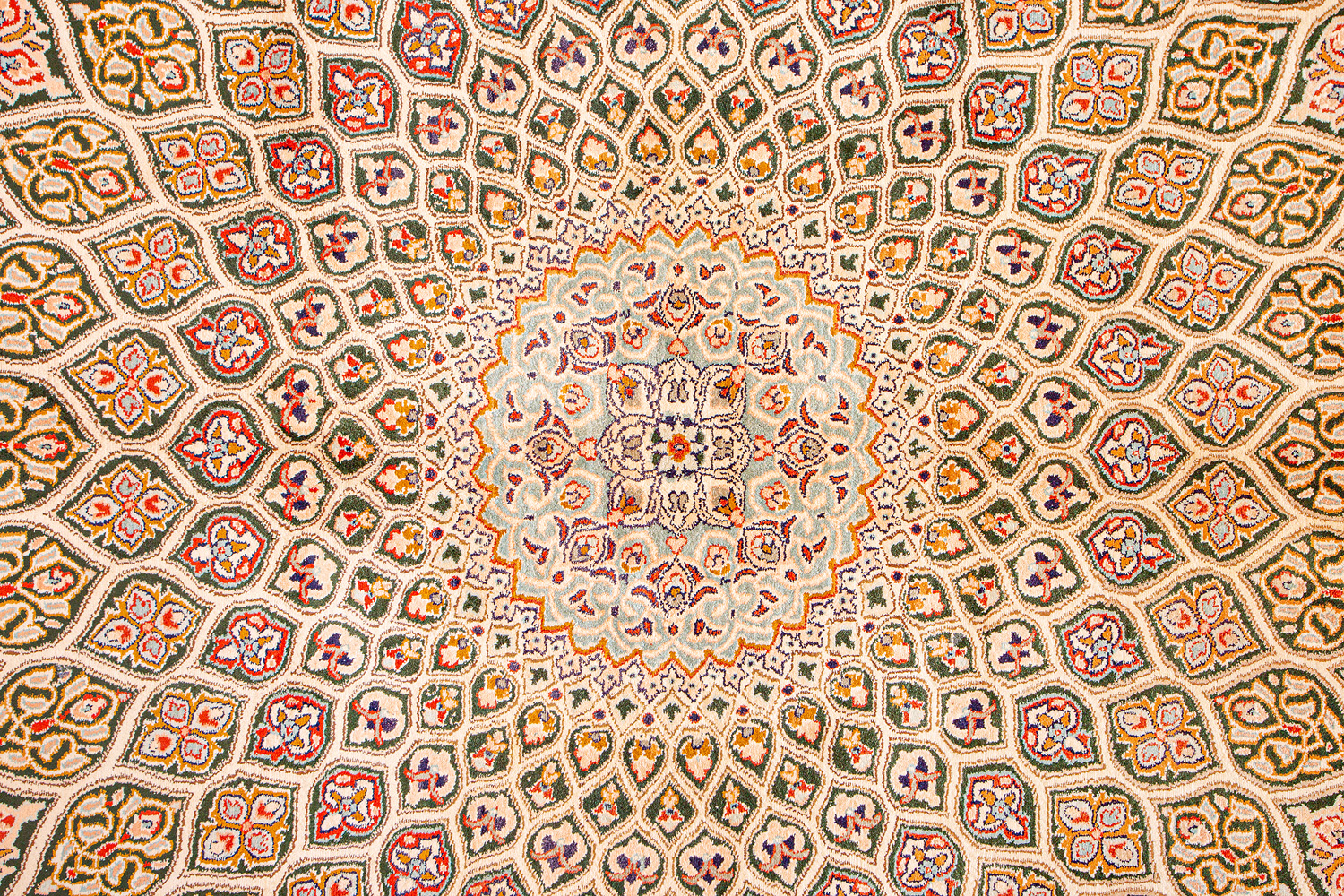 Гармония цвета и изображения придаёт коврам из коллекции Кашмир классическую выразительность, а шёлк в составе — яркие переливы блеска.