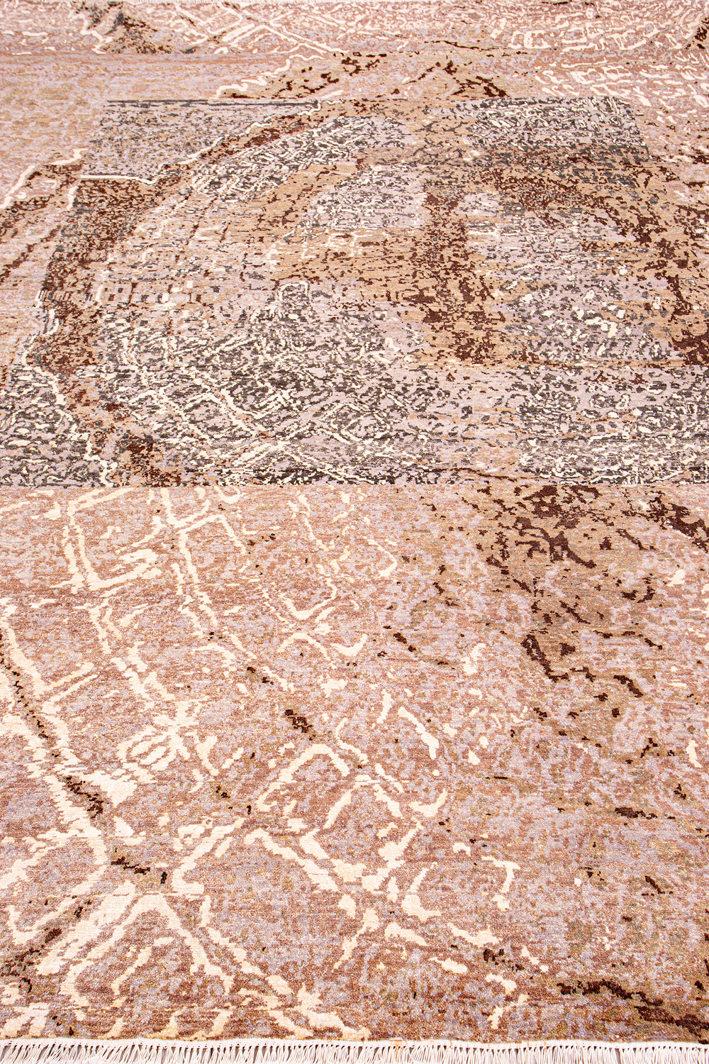 Дизайн ковров напоминает современные полотна художников-абстракционистов и производит столь же яркое и незабываемое впечатление в интерьере. Живописный эффект и необычная фактура зависят от выбора материала: натуральной шерсти, шёлка и от их сочетаний друг с другом. Ковры ткутся вручную в лучших мастерских Индии и Пакистана.