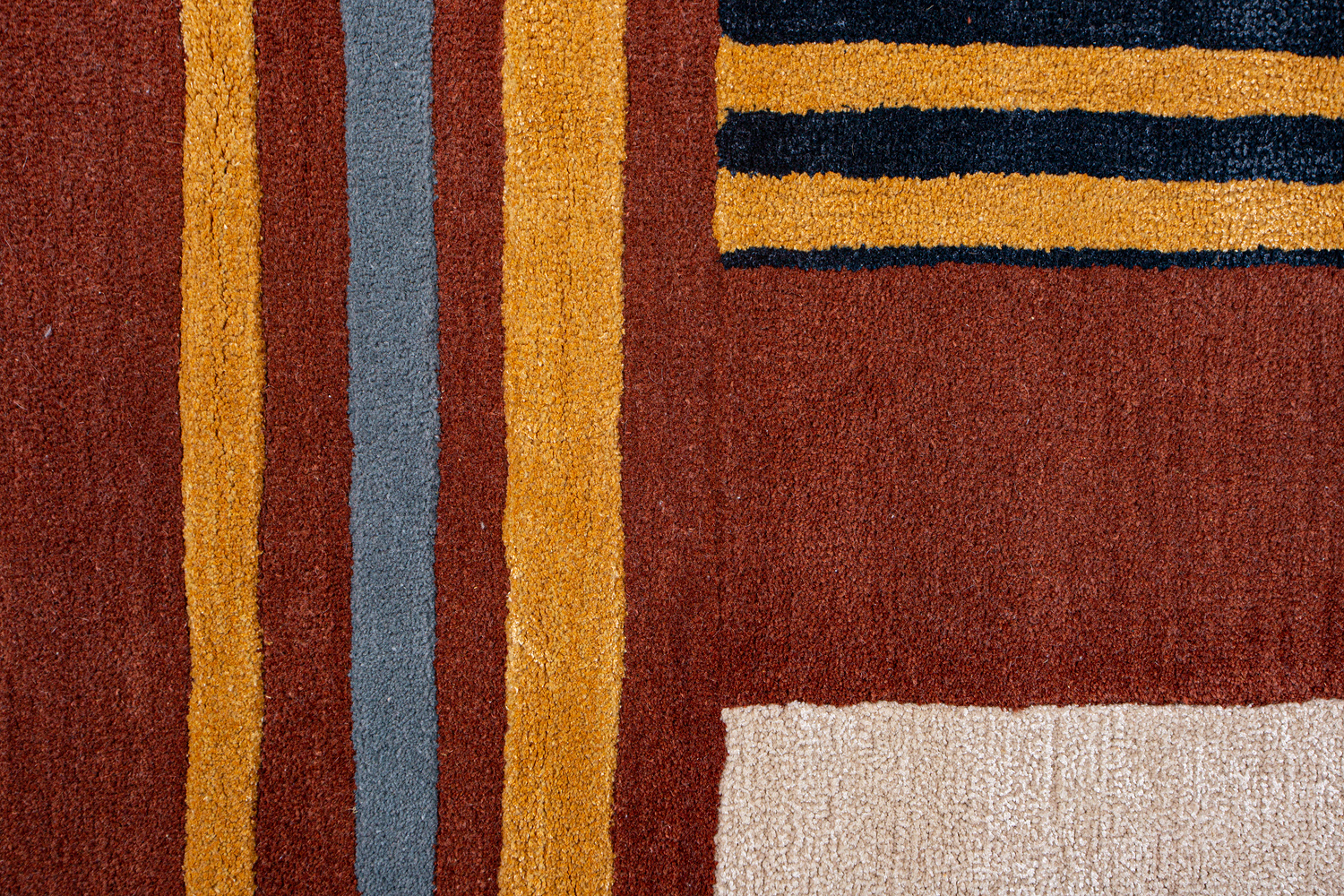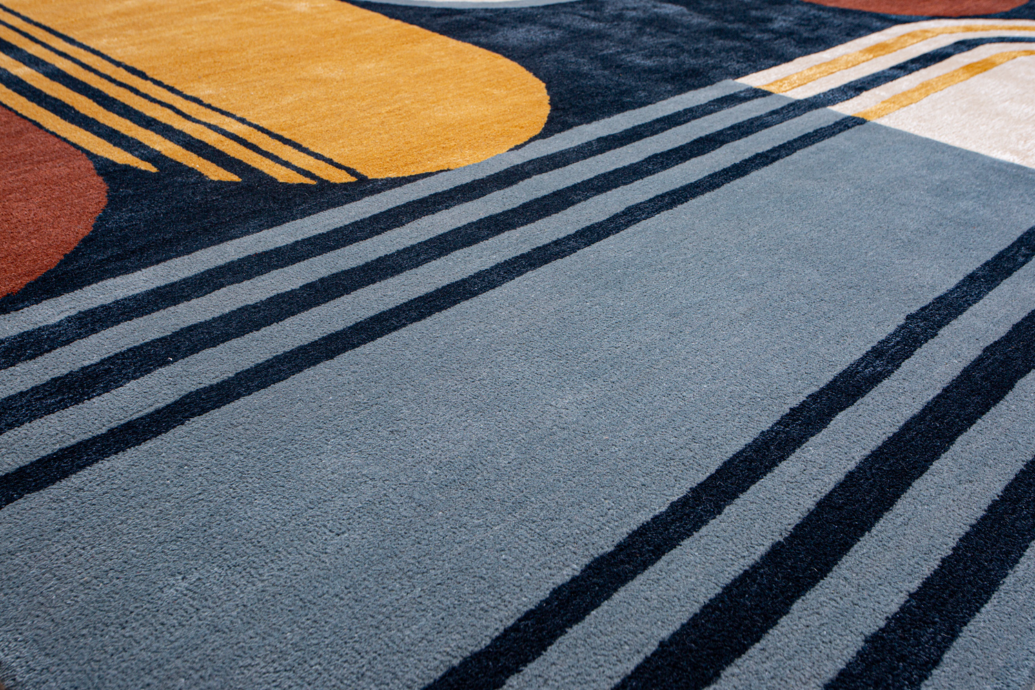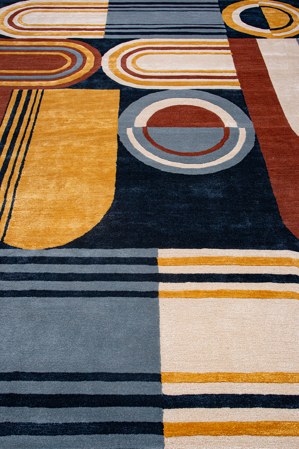 Крупные рисунки в виде линий и фигур на фактурной поверхности ковра превращаются в выразительные композиции. Они акцентируют на себе внимание и добавляют динамики в современный интерьер. Комбинации разных фигур и повторяющийся орнамент задают ритмическую основу пространству, привносят в него оригинальные оптические иллюзии.