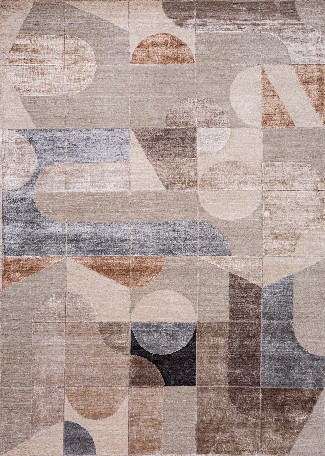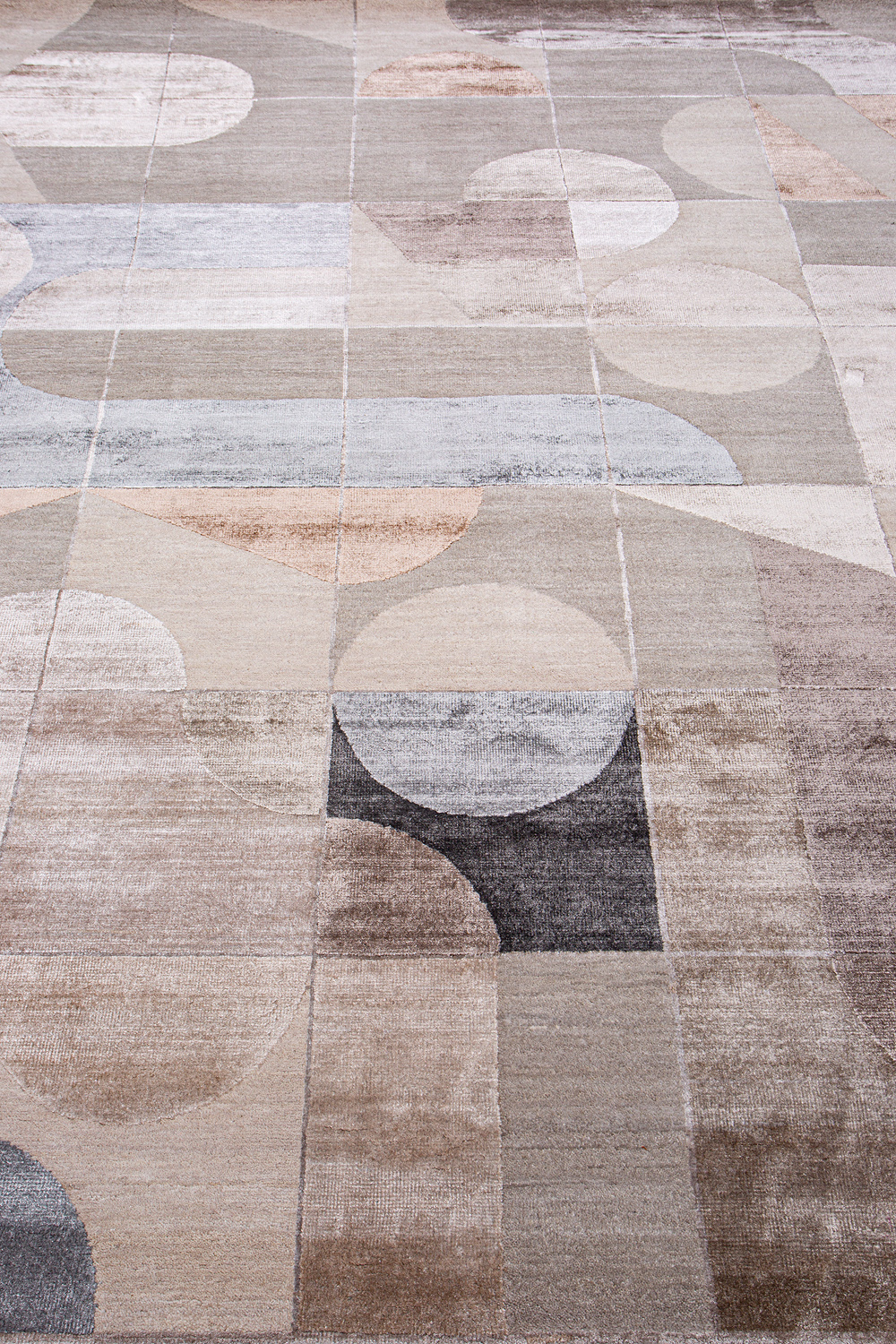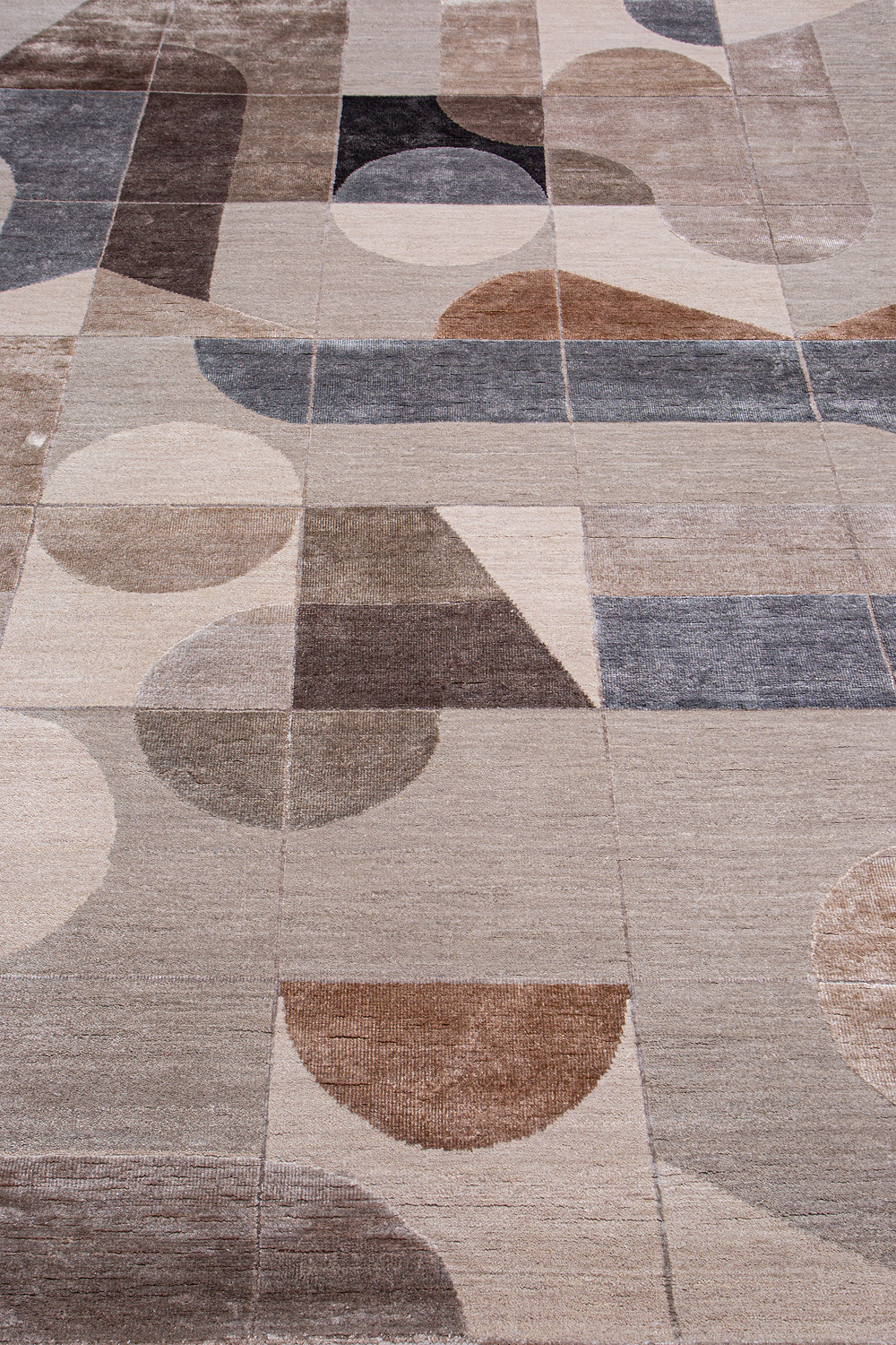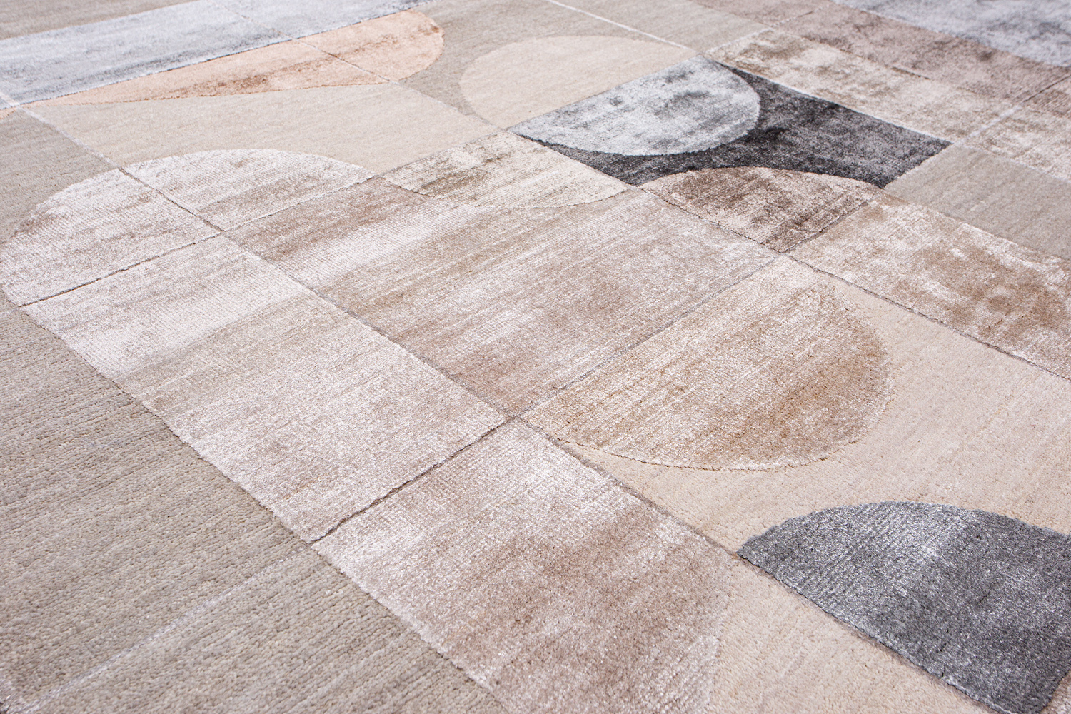 Крупные рисунки в виде линий и фигур на фактурной поверхности ковра превращаются в выразительные композиции. Они акцентируют на себе внимание и добавляют динамики в современный интерьер. Комбинации разных фигур и повторяющийся орнамент задают ритмическую основу пространству, привносят в него оригинальные оптические иллюзии.