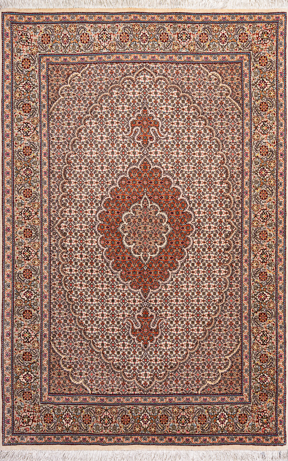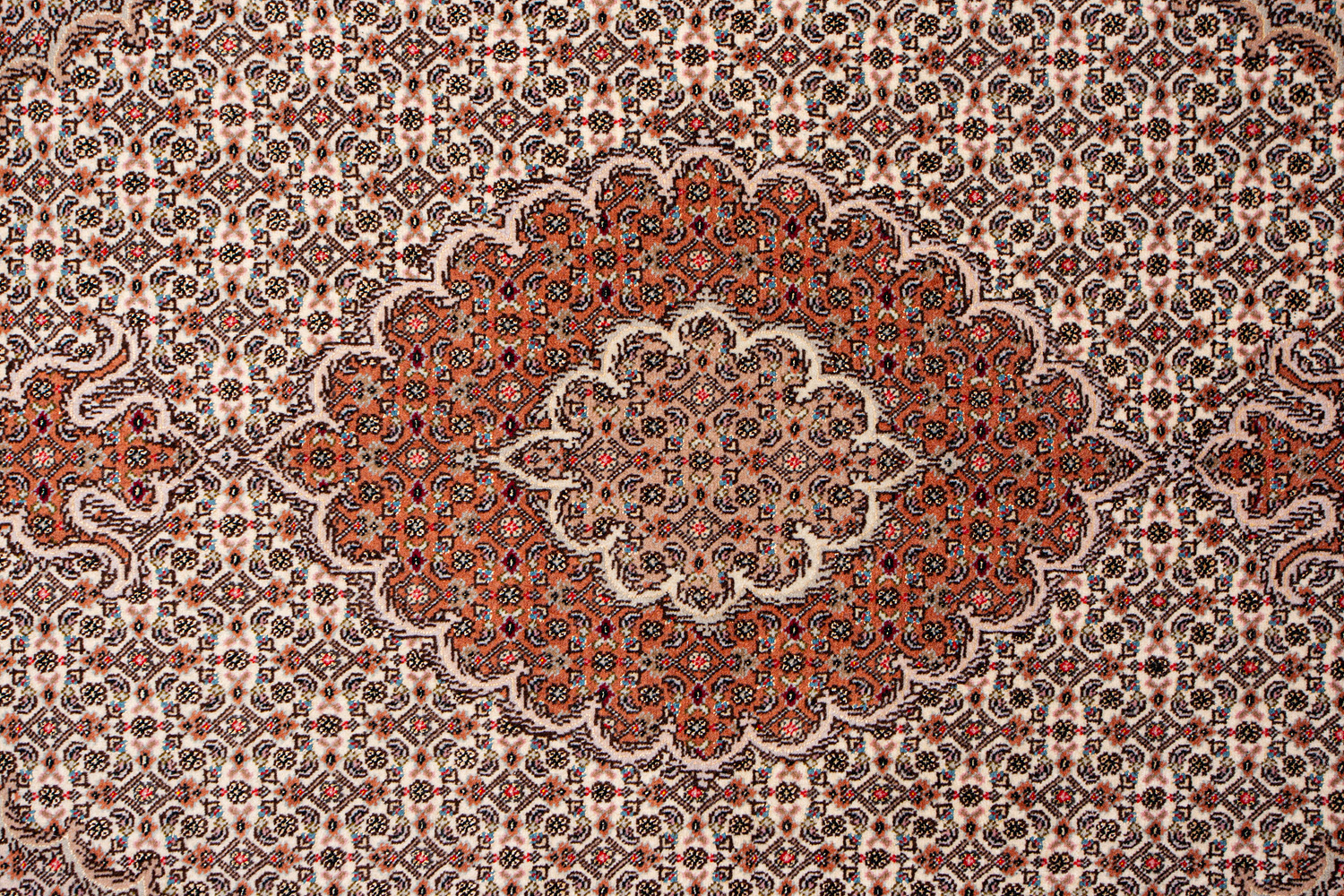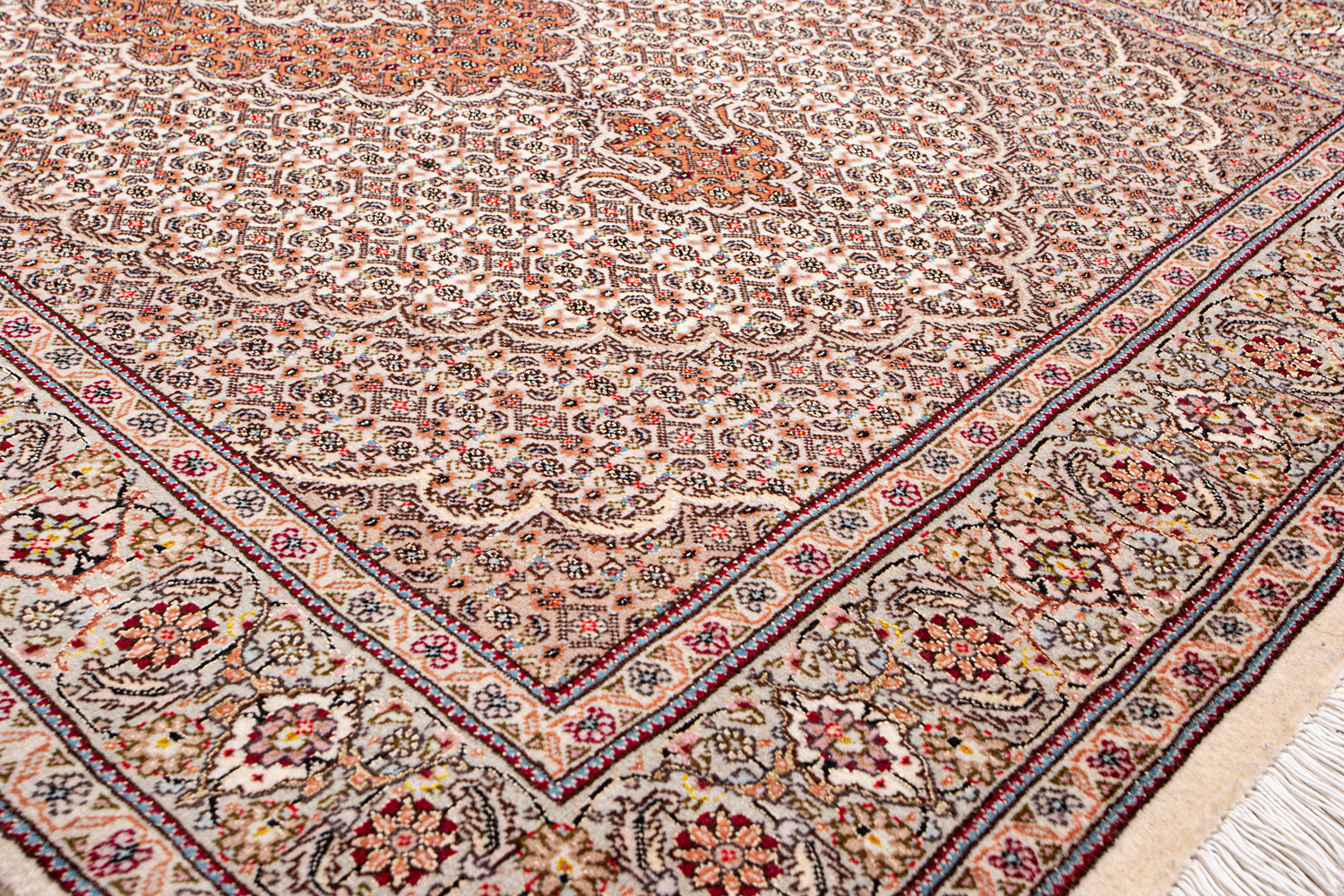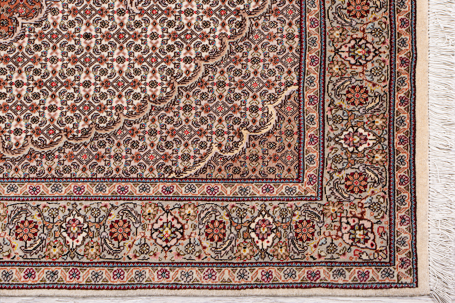 Рассыпанные по всему полю цветы, медальоны и «рыбная чешуя» — основные мотивы в дизайне ковров из коллекции Тебриз, а светлые тона и спокойные пастельные оттенки — основная цветовая палитра.