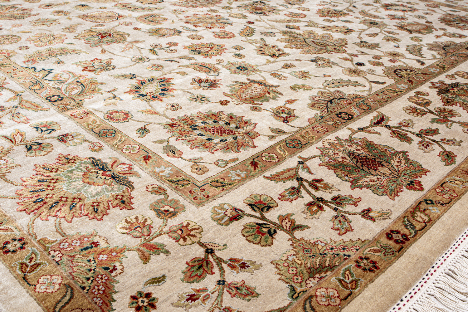 Более пяти веков назад в городе Агра зародилась знаменитая индийская школа ковроткачества, прославившаяся не меньше, чем расположенный здесь же Тадж-Махал. Мощное персидское влияние, помноженное на местный колорит, привело к появлению оригинальных орнаментов с богатыми растительными узорами — причудливым цветам, ветвям и листьям, разбросанным по всему полю ковра.