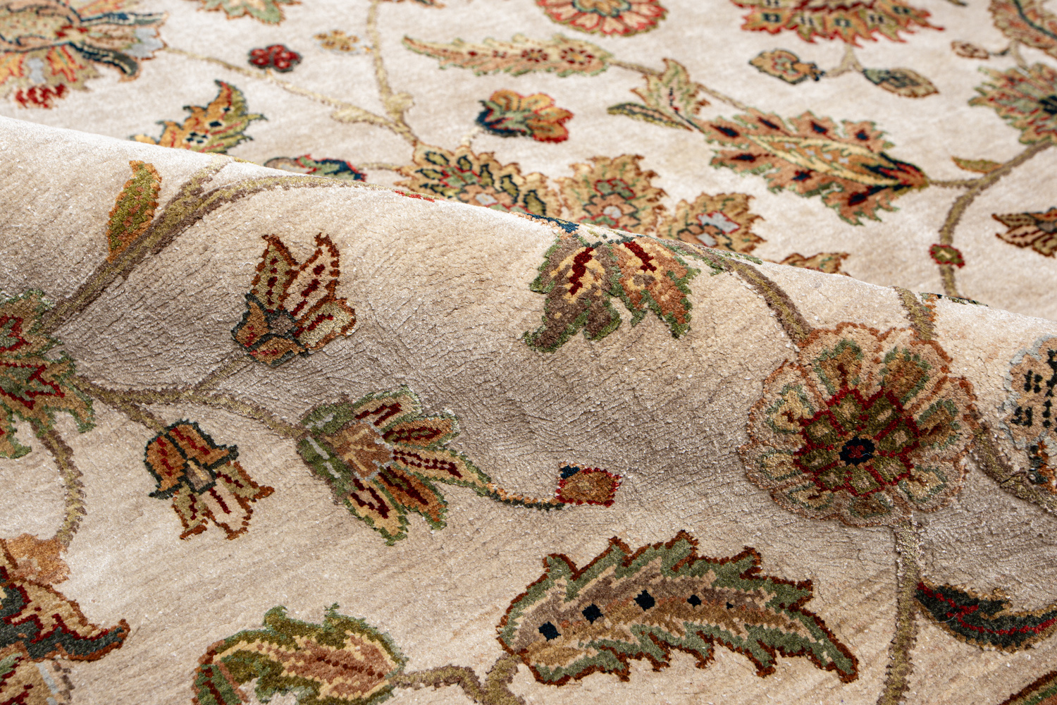 Каждый ковер в этой коллекции соткан вручную из шерсти и арт шёлка опытными индийскими мастерами.