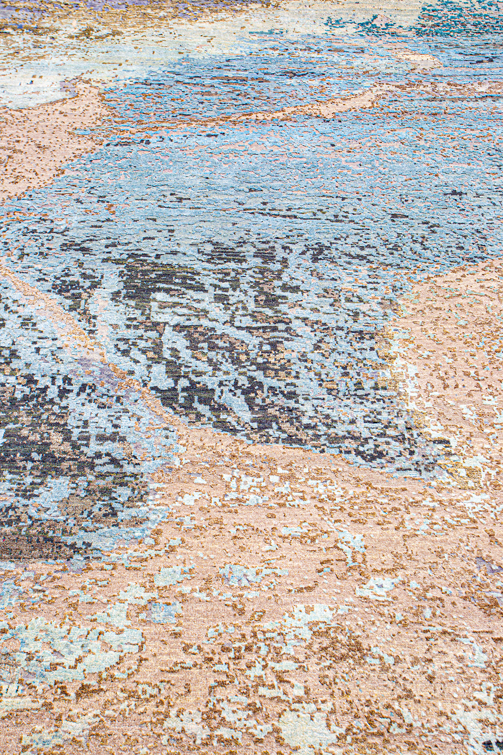 Дизайн ковров напоминает современные полотна художников-абстракционистов и производит столь же яркое и незабываемое впечатление в интерьере. Живописный эффект и необычная фактура зависят от выбора материала: натуральной шерсти, шёлка и от их сочетаний друг с другом. Ковры ткутся вручную в лучших мастерских Индии и Пакистана.