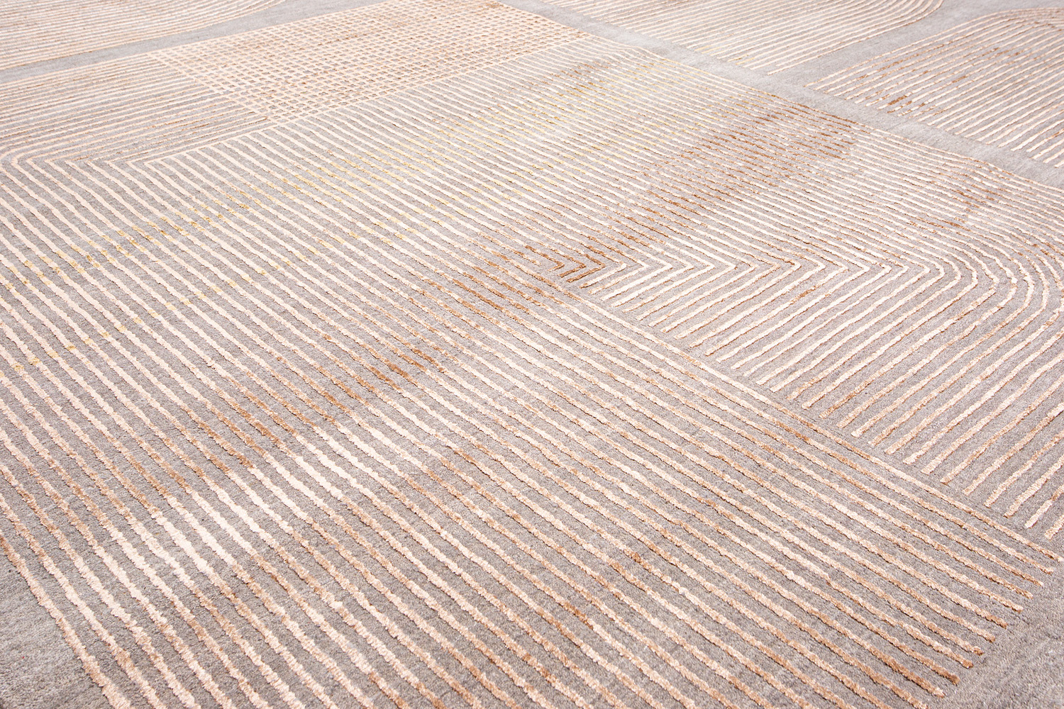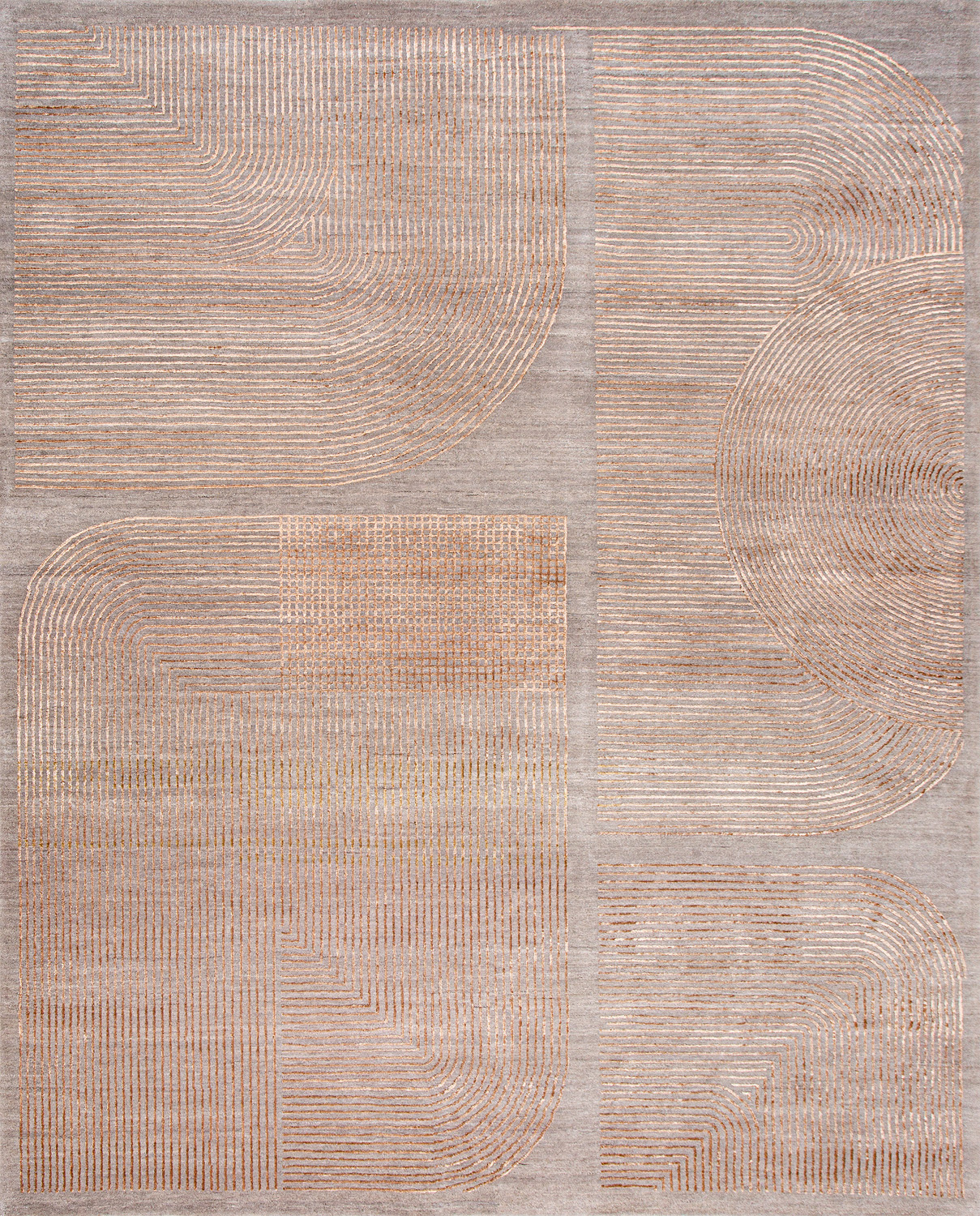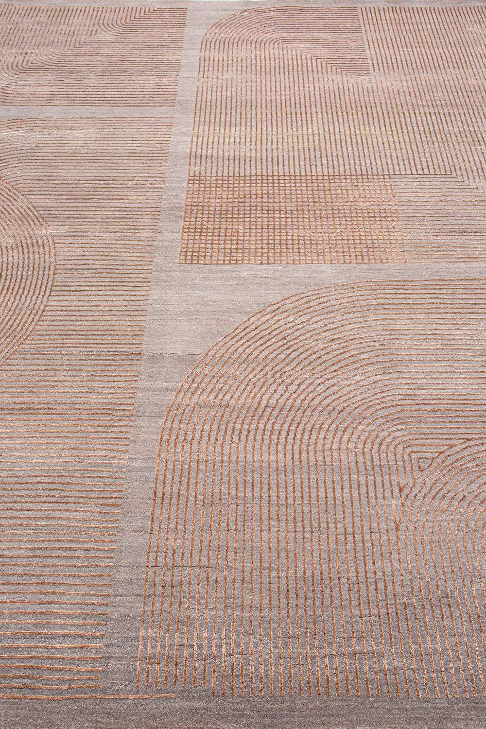 Крупные рисунки в виде линий и фигур на фактурной поверхности ковра превращаются в выразительные композиции. Они акцентируют на себе внимание и добавляют динамики в современный интерьер. Комбинации разных фигур и повторяющийся орнамент задают ритмическую основу пространству, привносят в него оригинальные оптические иллюзии.