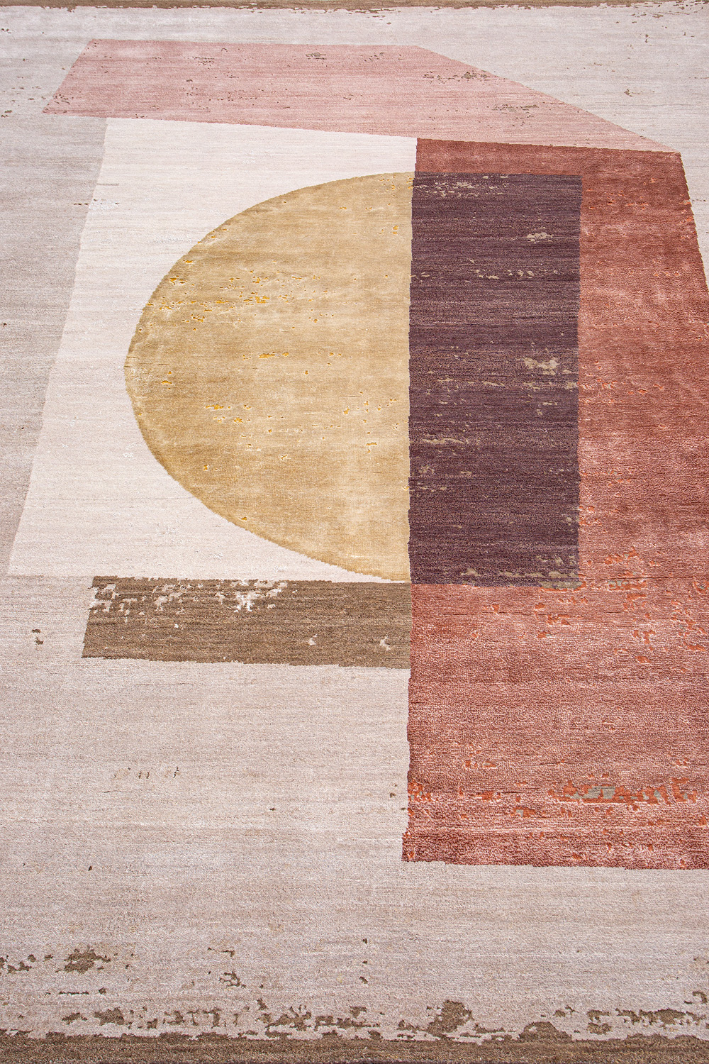 Дизайн ковров напоминает современные полотна художников-абстракционистов и производит столь же яркое и незабываемое впечатление в интерьере. Живописный эффект и необычная фактура зависят от выбора материала: натуральной шерсти, шёлка и от их сочетаний друг с другом. Ковры ткутся вручную в лучших мастерских Индии и Пакистана.
