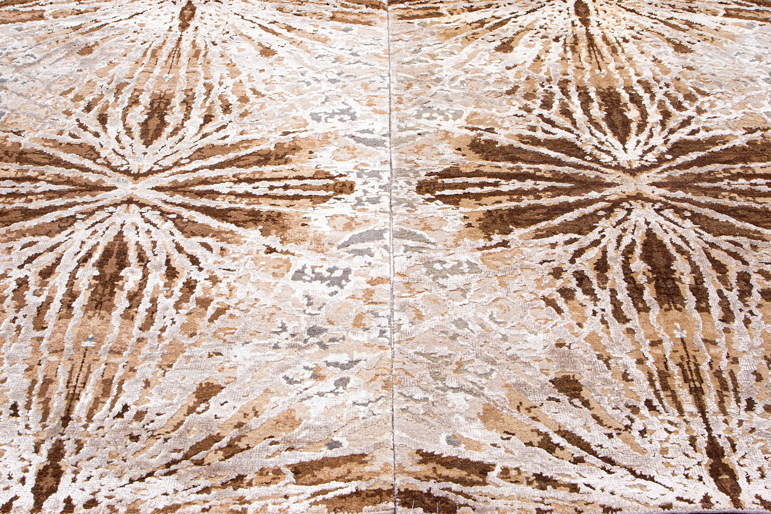 Дизайн ковров напоминает современные полотна художников-абстракционистов и производит столь же яркое и незабываемое впечатление в интерьере. Живописный эффект и необычная фактура зависят от выбора материала: натуральной шерсти, шёлка и от их сочетаний друг с другом. Ковры ткутся вручную в лучших мастерских Индии и Пакистана.